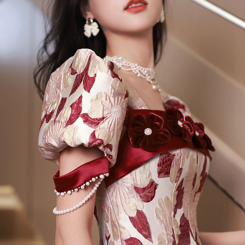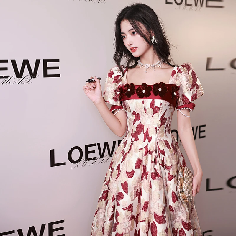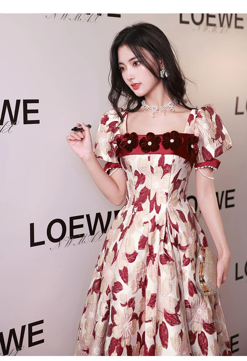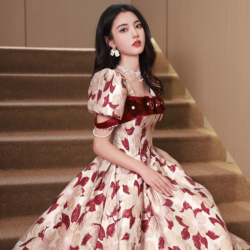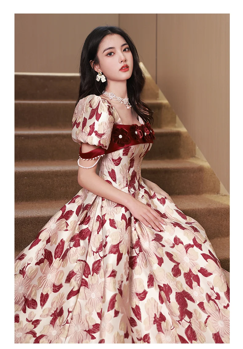 Home Uncategorized Jacquard Satin Prom Dresses 2023 Elegant Square Neck A-Line Floor-Length Long Women Special Occasion Dresses For Wedding