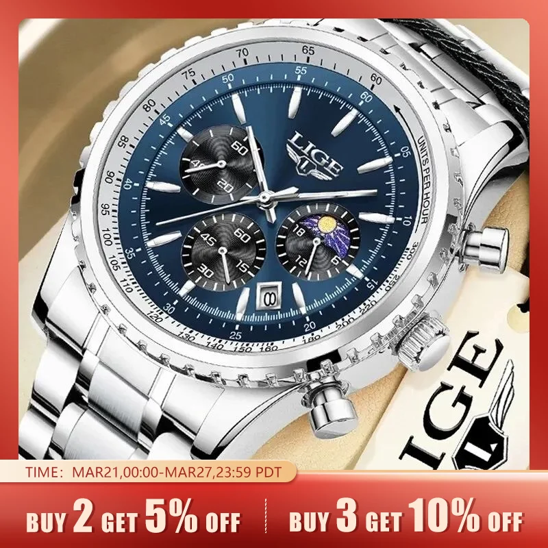 LIGE 2024 Top Brand Luxury New Men Watch Quartz Man Watches Waterproof Luminous Watch for Men Date Chronograph Sport Wristwatch
