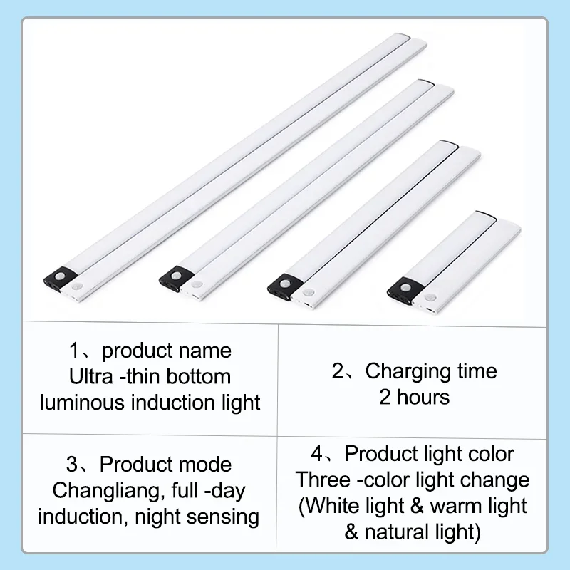 Motion Sensor Night Light USB Rechargeable Wireless Lamp Under Cabinet Led Lights for Kitchen Cabinet Bedroom Wardrobe Lighting
