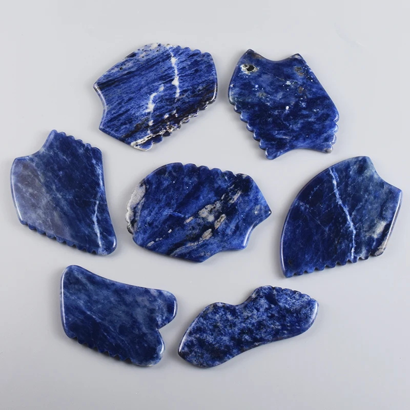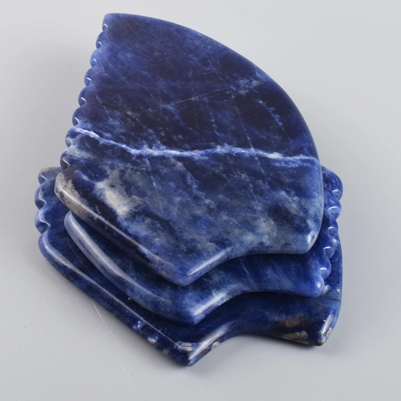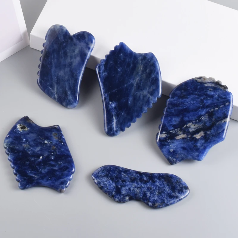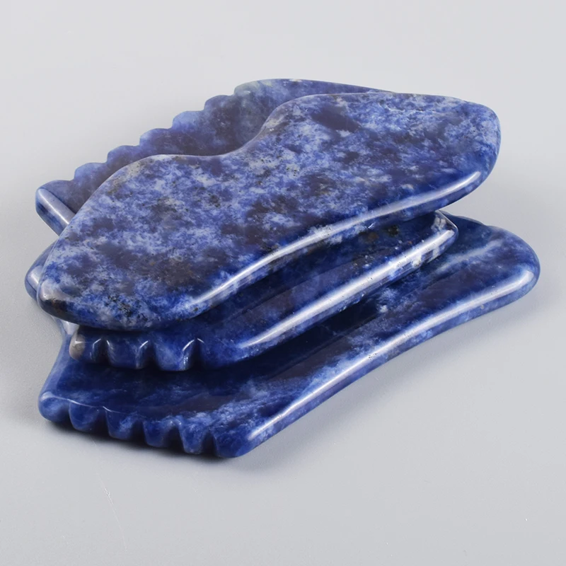 Natural Jade Stone Gua Sha Blue Stripe Face Massage Comb Edge Facial Skin Scraping Tool Beauty Health Anti-Cellulite Relieve SPA