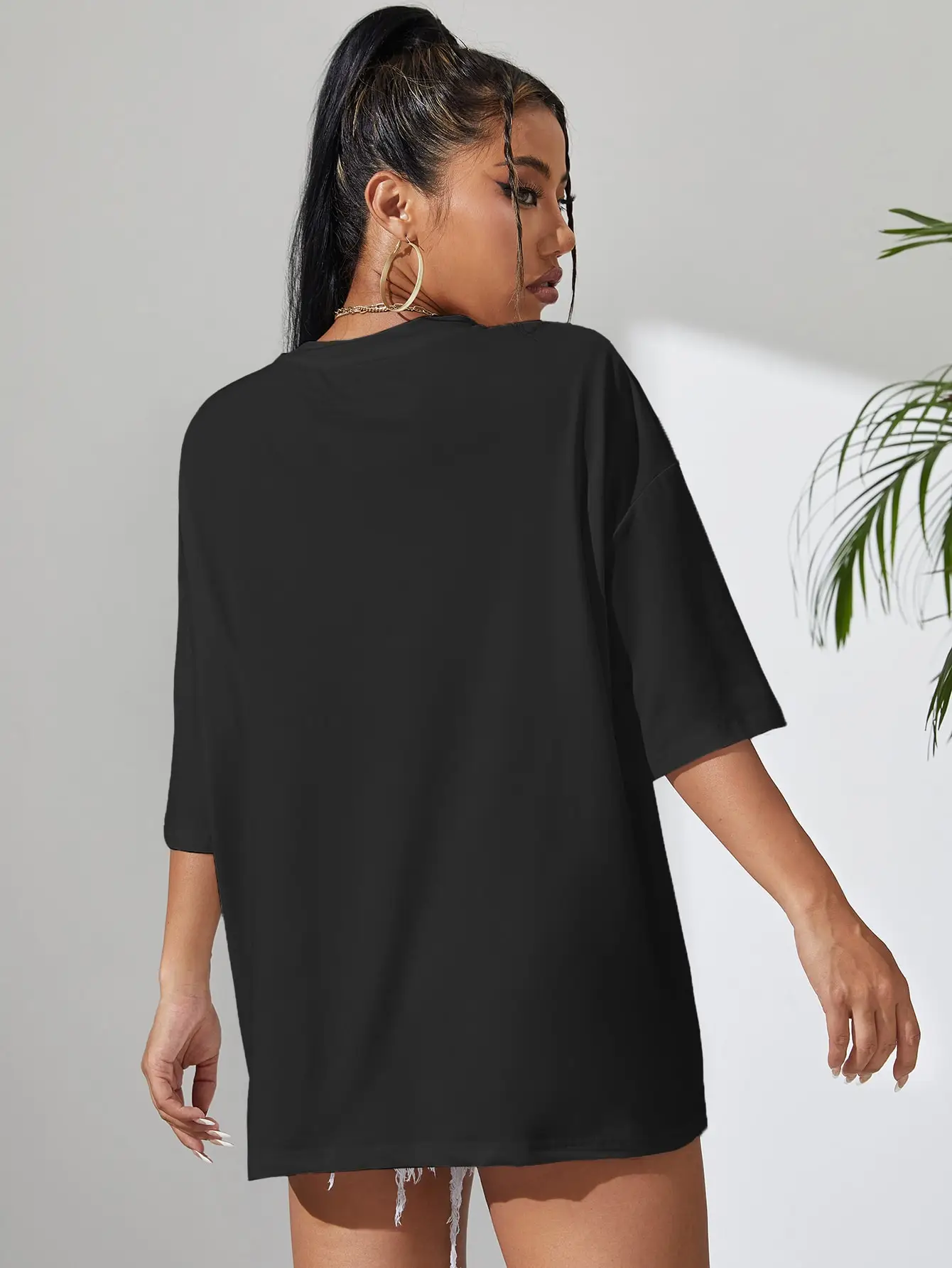 Unhappy Face Cotton Printed Woman Tee Shirt Harajuku Loose Tee Tops Essential Round Neck Casualtshirts Oversized Sport Tshirts