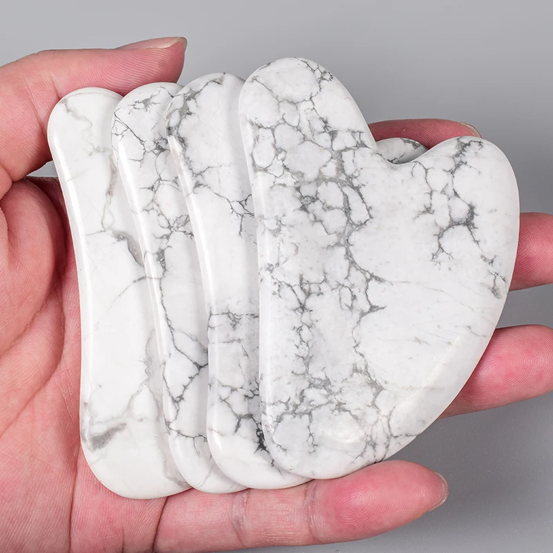White Howlite Care Face Guasha Massage Tools Set Facial Neck Beauty Acupuncture Scraping Crystal Stone Health Lift Therapy