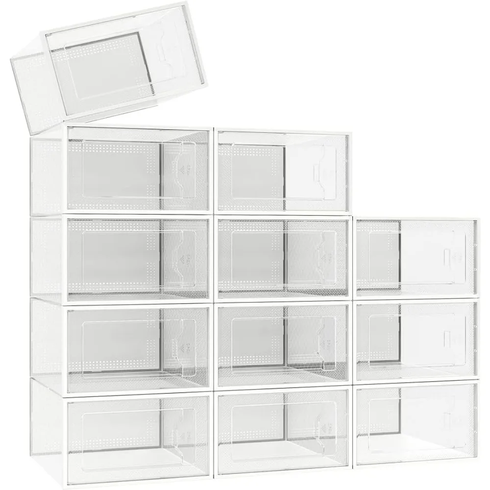 Home Uncategorized X-Large 12 Pack Shoe Boxes Clear Plastic Stackable Shoes Organizer Shoerack Rack Living Room Furniture Home freight free