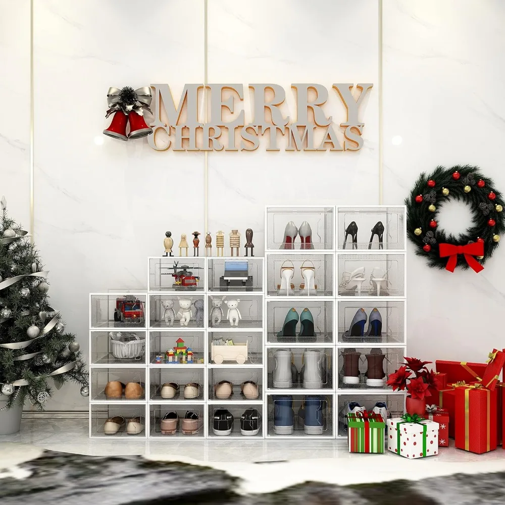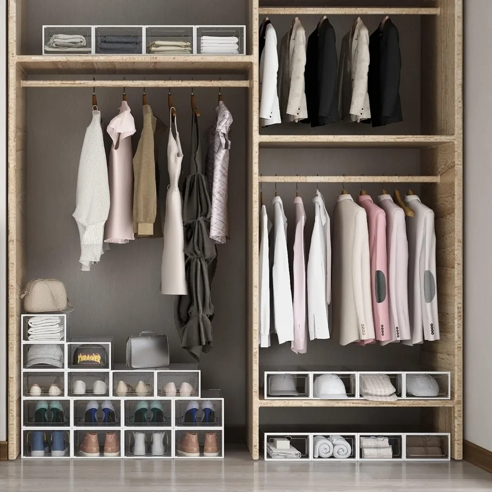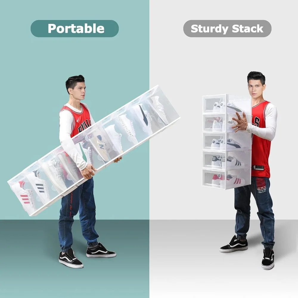 X-Large 12 Pack Shoe Boxes Clear Plastic Stackable Shoes Organizer Shoerack Rack Living Room Furniture Home freight free