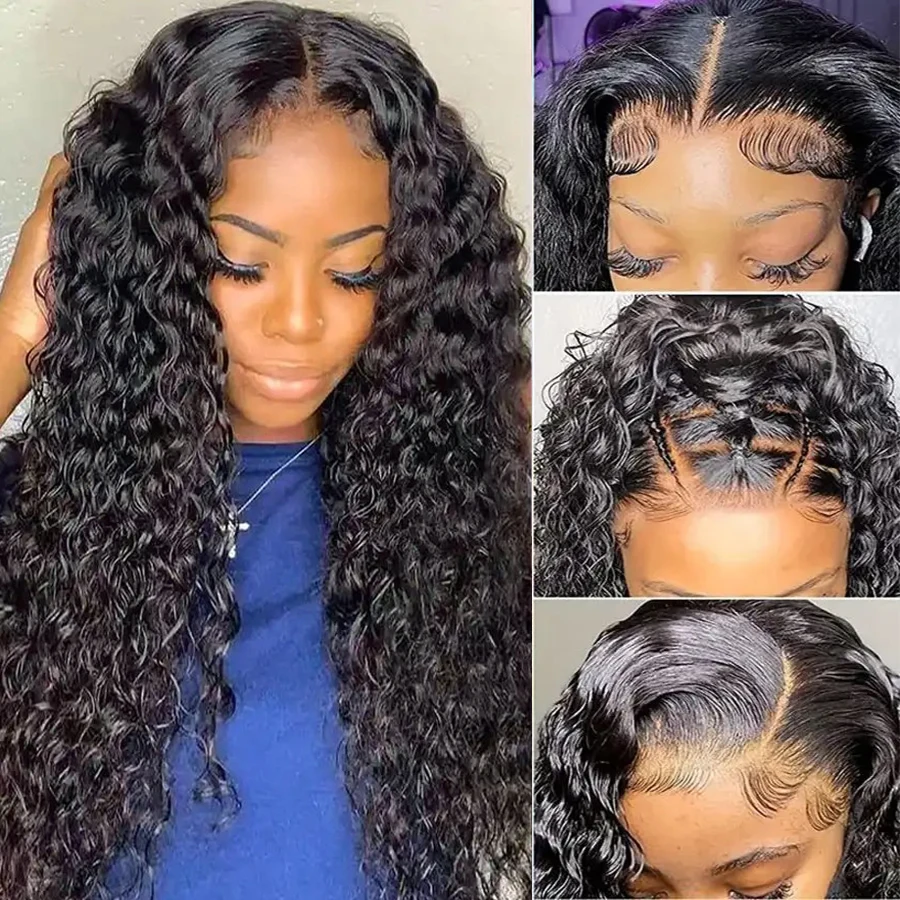 30Inch 4×4 Deep Curly Lace Closure Wig Hd Transparent Deep Wave Wig Glueless Curly Human Hair Wigs For Women Remy 180%