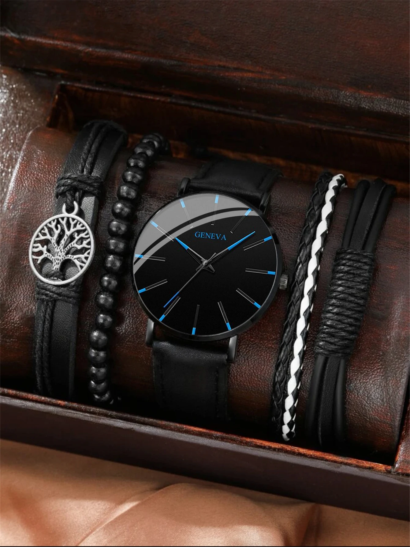 Uncategorized 5pc Black Classic Quartz Watch Men Dial Watch Fashion Round Quartz Simple Casual Watch For Sports Leather Bracelet affiliatedstore - March 25, 2024 0 Price: [price_with_discount]