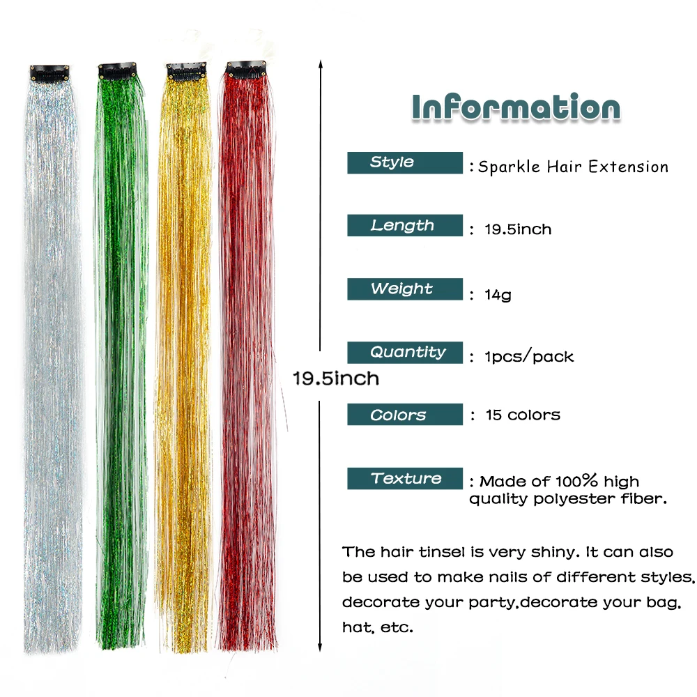 5Pcs/Pack Sparkle Hair Extensions Clip In Rainbow Shiny Sparkle Hair Tinsel Heat Resistant Sparkle Hair Extensions For Braids