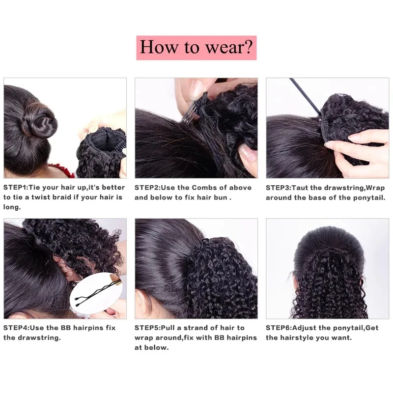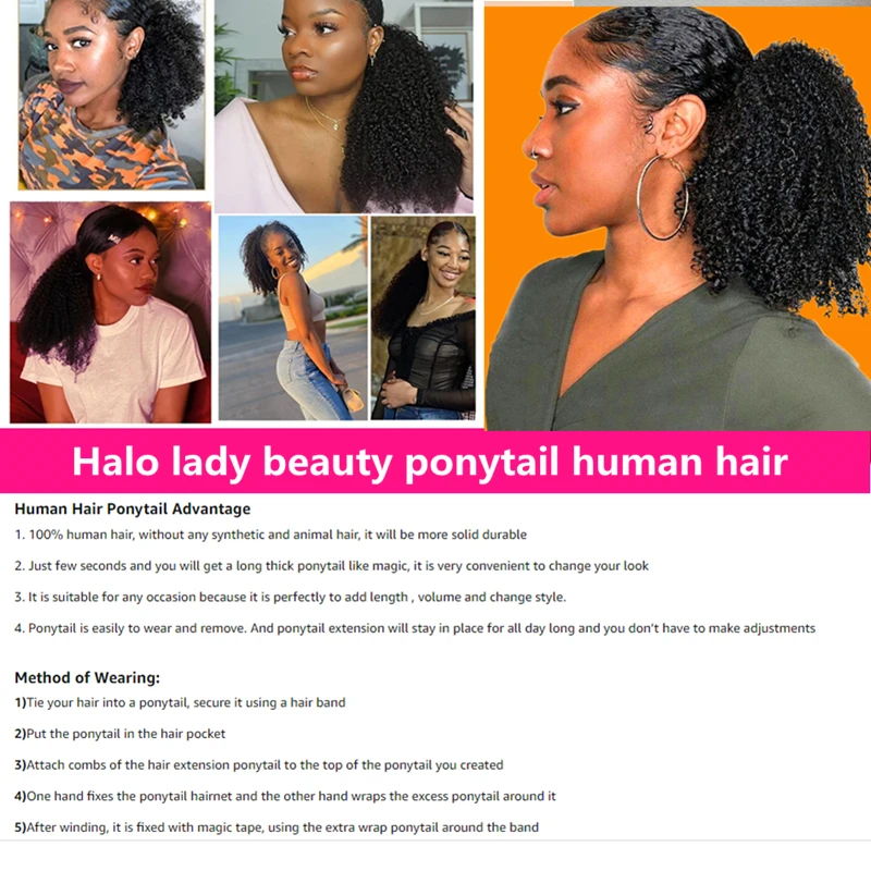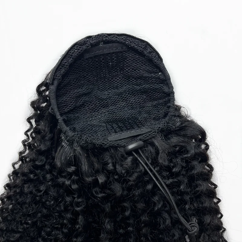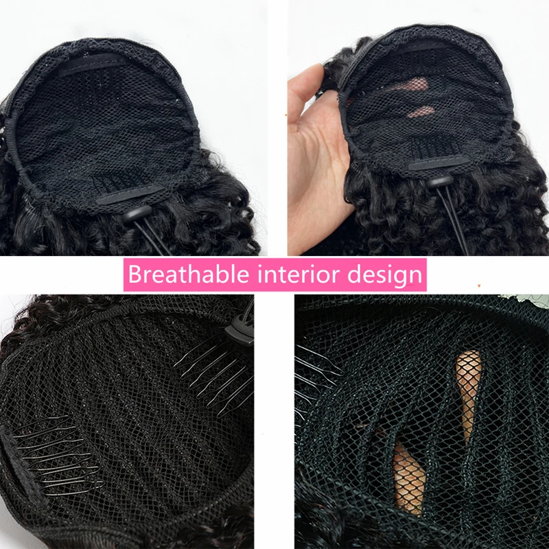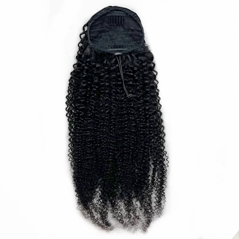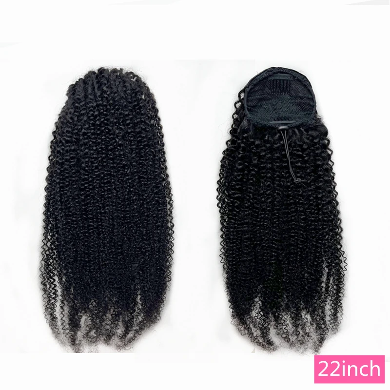 8-22inch Drawstring Curly Human Hair Ponytail Extension for African Women 4B-4C Afro Kinky Ponytail Extension Naturally