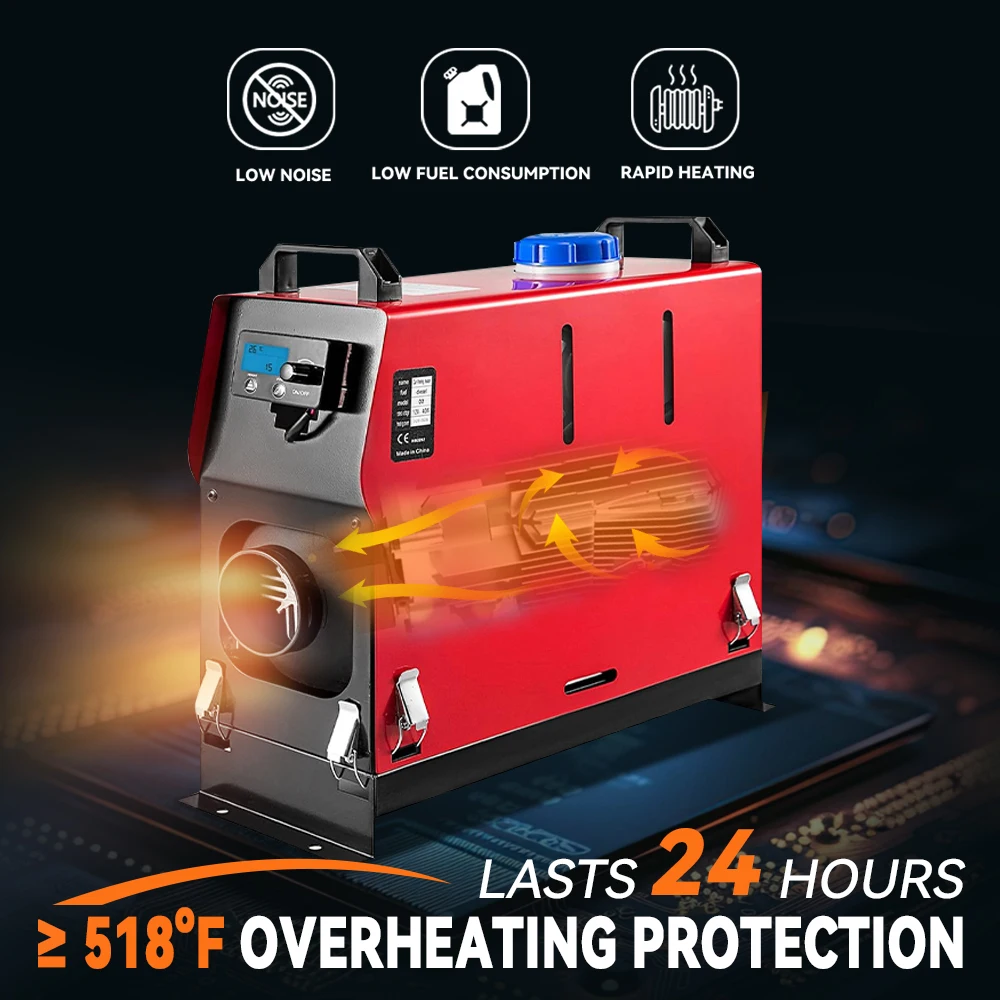 All-in-one Diesel Heater: Heater Power: 8KW; Rated Voltage: 12V; Working Temperature of the Heater: -40℃~+50℃; Working Temperature of the Oil pump:-40℃~+40℃; Fuel Consumption: 0.18 – 0.48 (L/H); Fuel Gasoline: Diesel Only. We have gotten you lined with this diesel air heater to heat your automotive and take away the home windows' frost on chilly winter days. With quick heating and low noise, the aluminum heater runs easily in any harsh atmosphere.