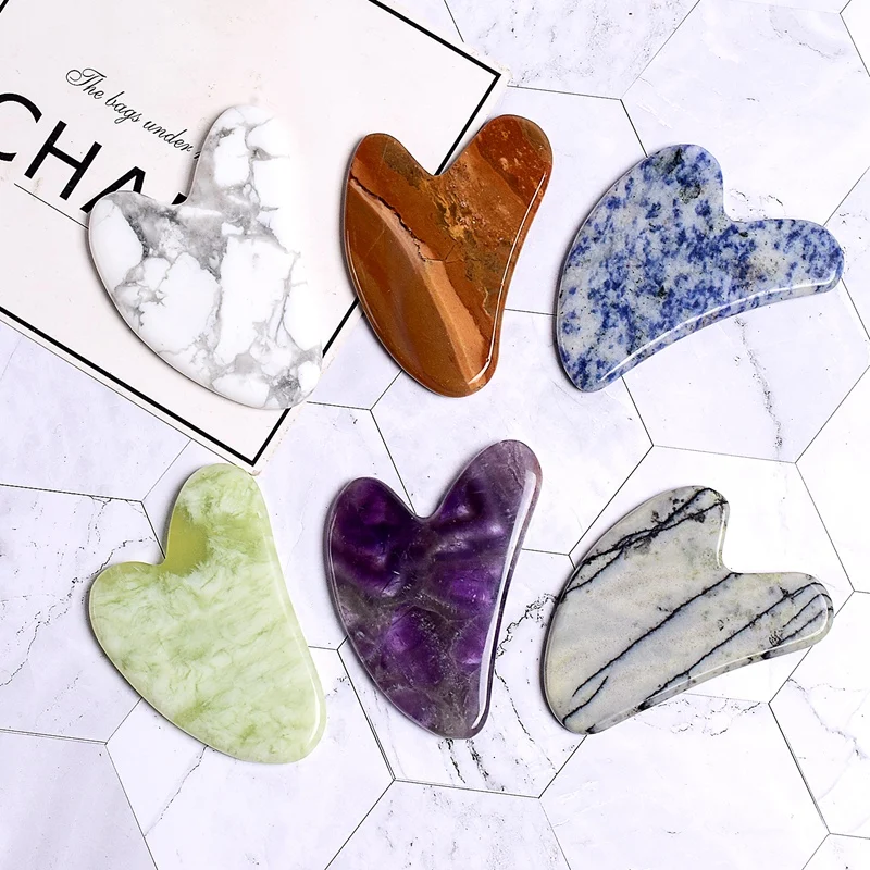Heart Shape Gua Sha Tool Face Rose Quartz Stone Massager Chin Nose Lifting Firming Scraping Board Massage Facial Health Care Skin
