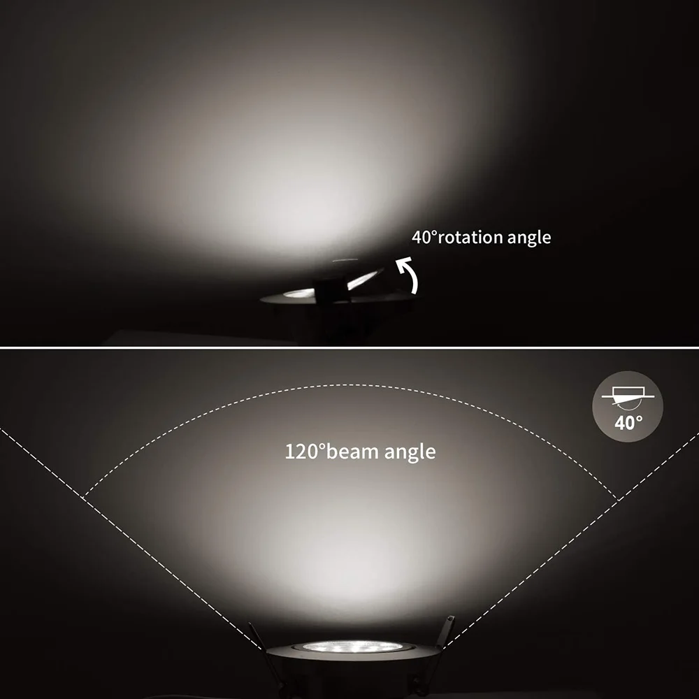 【PRODUCT SPECIFICATION】Measuring 3.38 inches (86mm) in diameter, the lamp physique will be adjusted from 0 to 40 levels, and the beam angle is 120 levels. Crafted from aluminum alloy, the built-in trim ring ensures excessive security and simple set up.