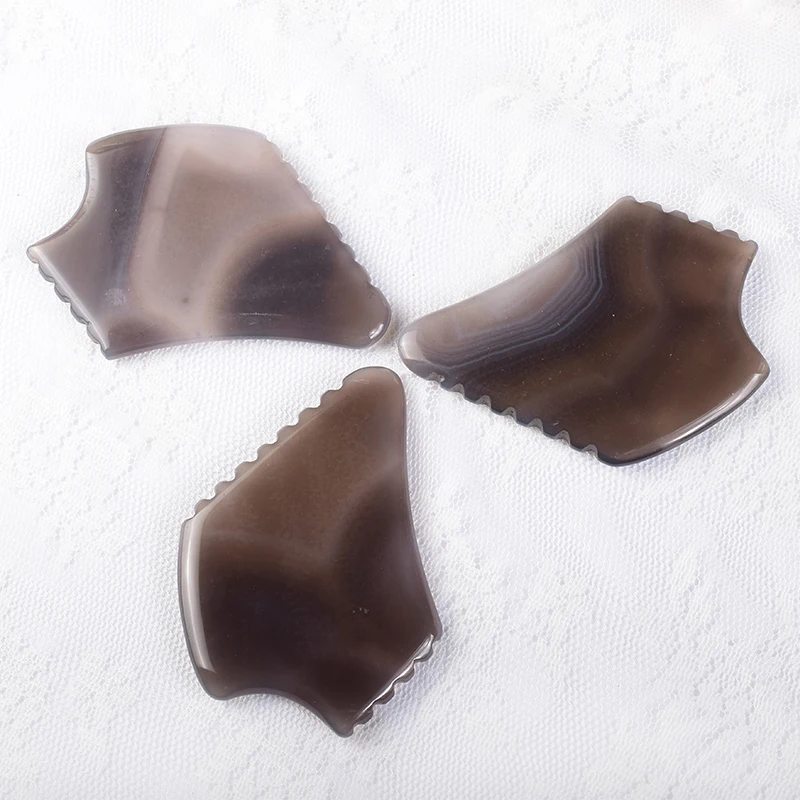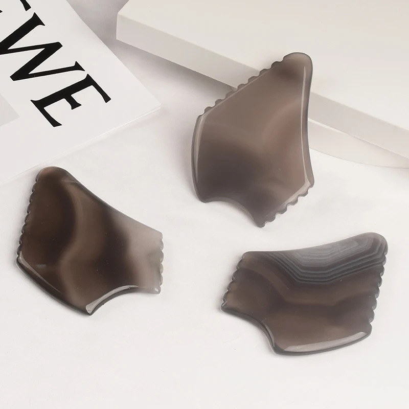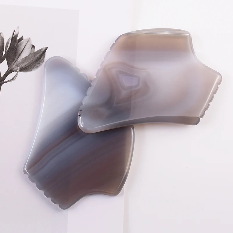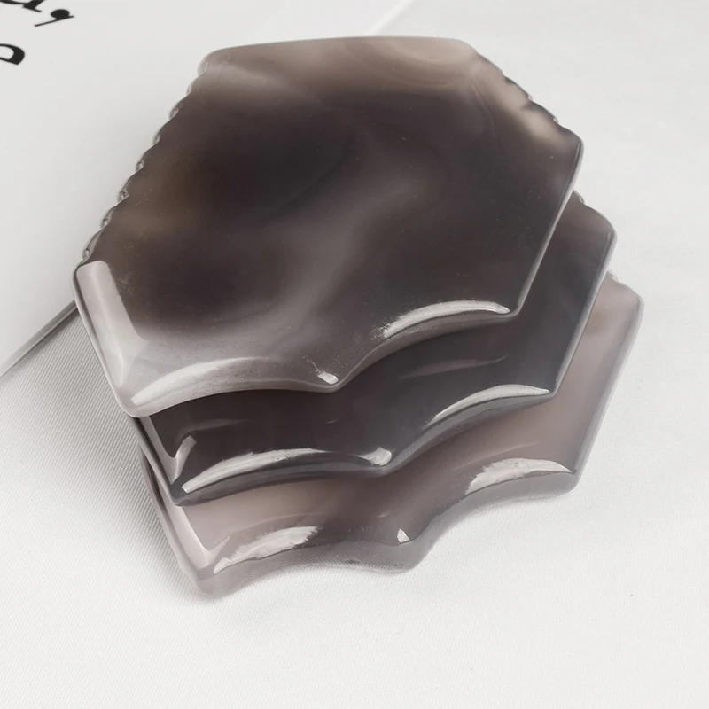 Natural Grey Agate GuaSha Jade Facial Beauty Scraping Massage Tools Face Care Lifting Wrinkle Remover Beauty Health Neck Therapy