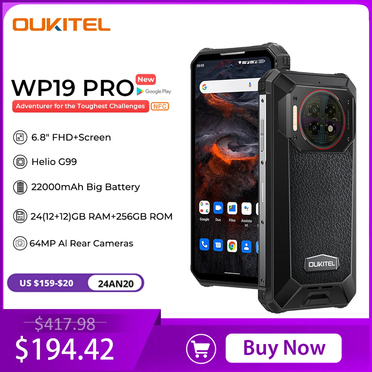 Oukitel WP19 Pro Rugged Phone 22000mAh 24GB 256GB Smartphone 64MP Camera Helio G99 Cellphone 120Hz Mobile Phone