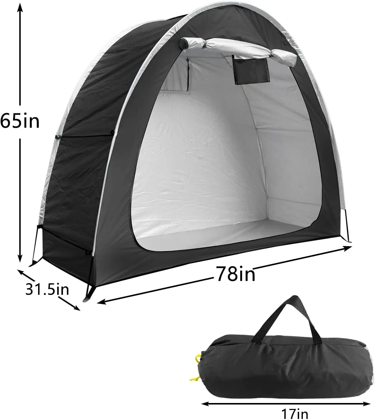 【Space-saving storage】 78.8 x 65 x 31.5 inches, can accommodate two grownup bicycles, As an out of doors storage tent, it could actually retailer long-handled backyard instruments, furnishings mats, bicycles, garden mowers, coolers, swimming pool toys and different gadgets. You may also use it as a campsite or some other objective you need. 【Sturdy materials】The bicycle shed is product of high-quality 210D Oxford material, three layers of anti-tear materials, PU4000 waterproof and anti-ultraviolet remedy. No want to fret about fading. Integrated ground, full zipper design can fully seal the door, handy for entry and supply complete safety in opposition to water, mud and bugs. All seams are rolled and double stitched with sturdy thread, which might be firmly supported in any unhealthy climate. 【Protection】The full zipper on the door can fully seal the door and supply complete safety. The silver-plated cloth can keep away from ultraviolet rays in all instructions, stop gear getting old, small window design, and handy air flow. 【Quick setup and disassembly】 It solely takes 10 minutes to assemble the tent, with none instruments (when you want any assist, please contact us)! Just like a daily tent, set up is fast and simple. simply straighten the body and insert it into the hole reserved within the tent, bend the body into an arch with a bit of power and use a shorter body to open the width to make use of. 【Easy to hold】 A bag with a deal with is hooked up, which is straightforward to move and retailer when not in use. The unit parts are foldable they usually all match within the accompanying suitcase