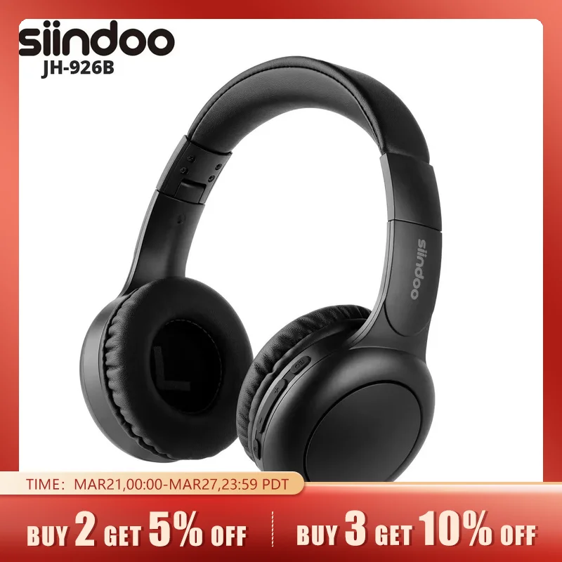 Siindoo JH-926B Wireless Bluetooth Headphones Over Ear Foldable Lightweight Headset with Mic 3 EQ Modes for Kids Teenager