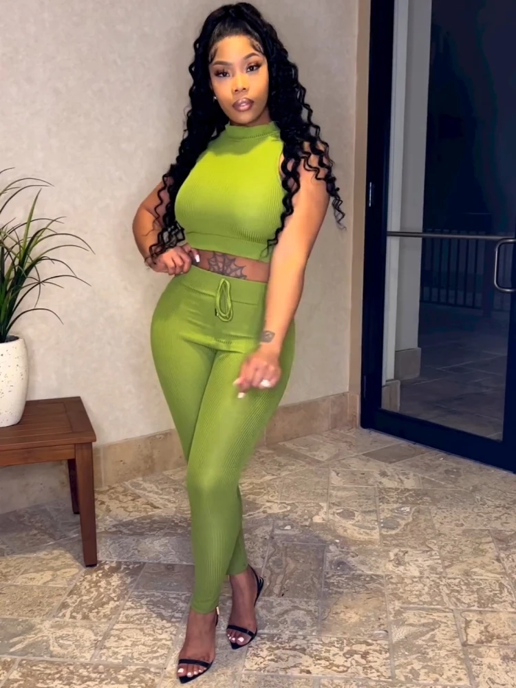 Home Uncategorized Spring women’s fashion solid color casual two-piece set