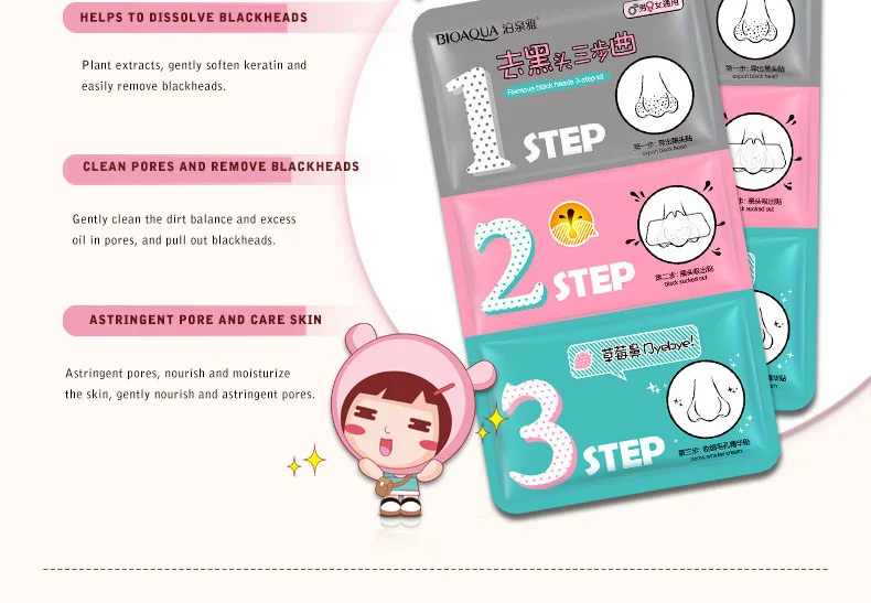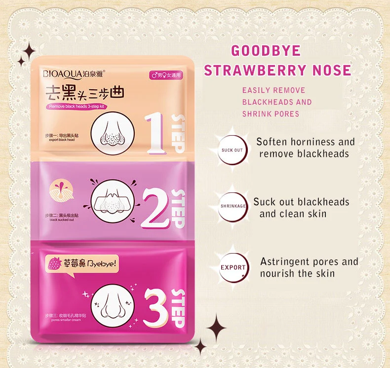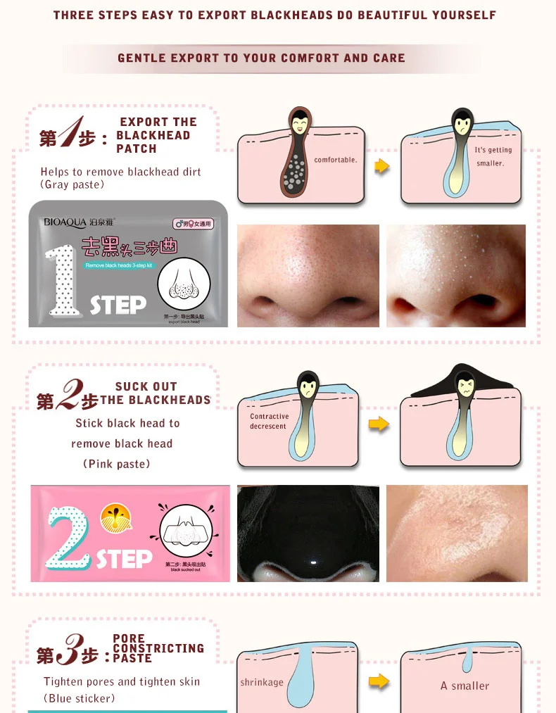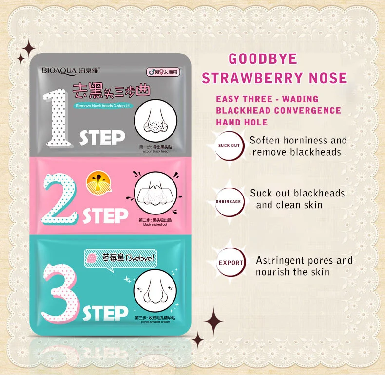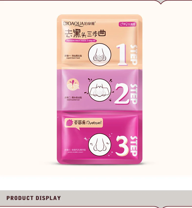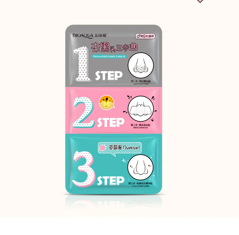 Home Uncategorized 3 Steps Kit Blackhead Remover Shrink Pores Nasal Paste Deep Cleaning Nose Masks Facial T Area Care Moisturizing Beauty Skin Care