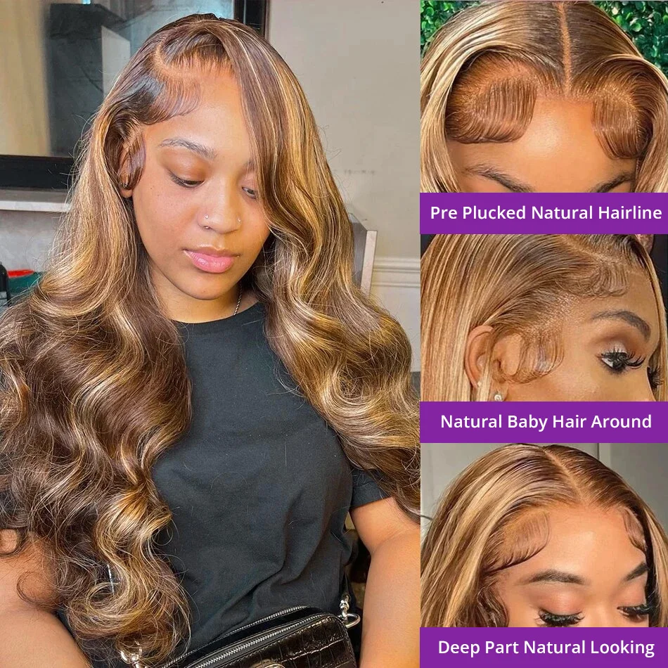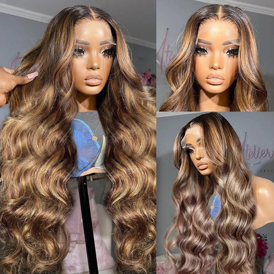 Home Uncategorized 30 40 inch Colored Highlight Body Wave 13×6 HD Lace Front Human Hair Wigs Honey Blonde 13×4 Water Wave Frontal Wig For Women