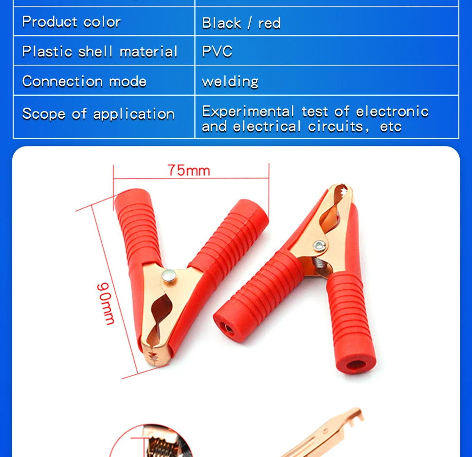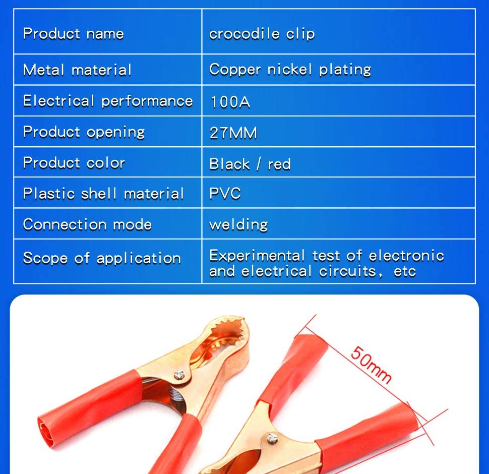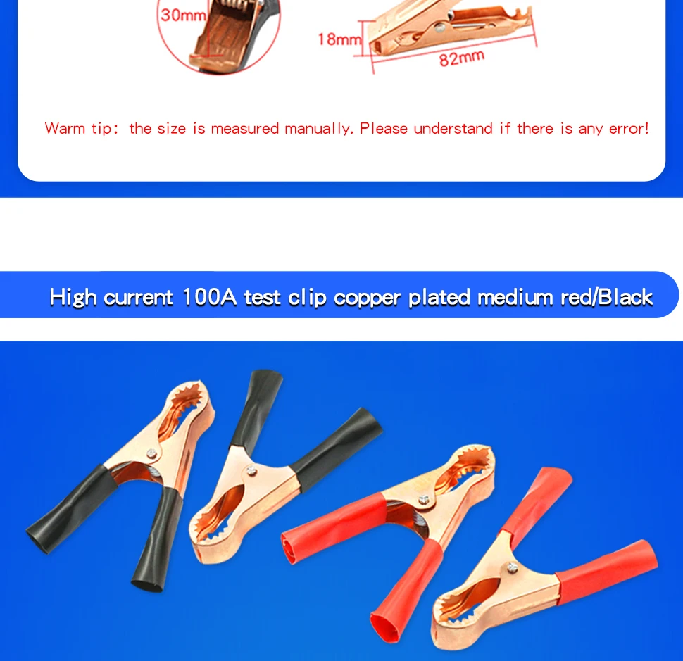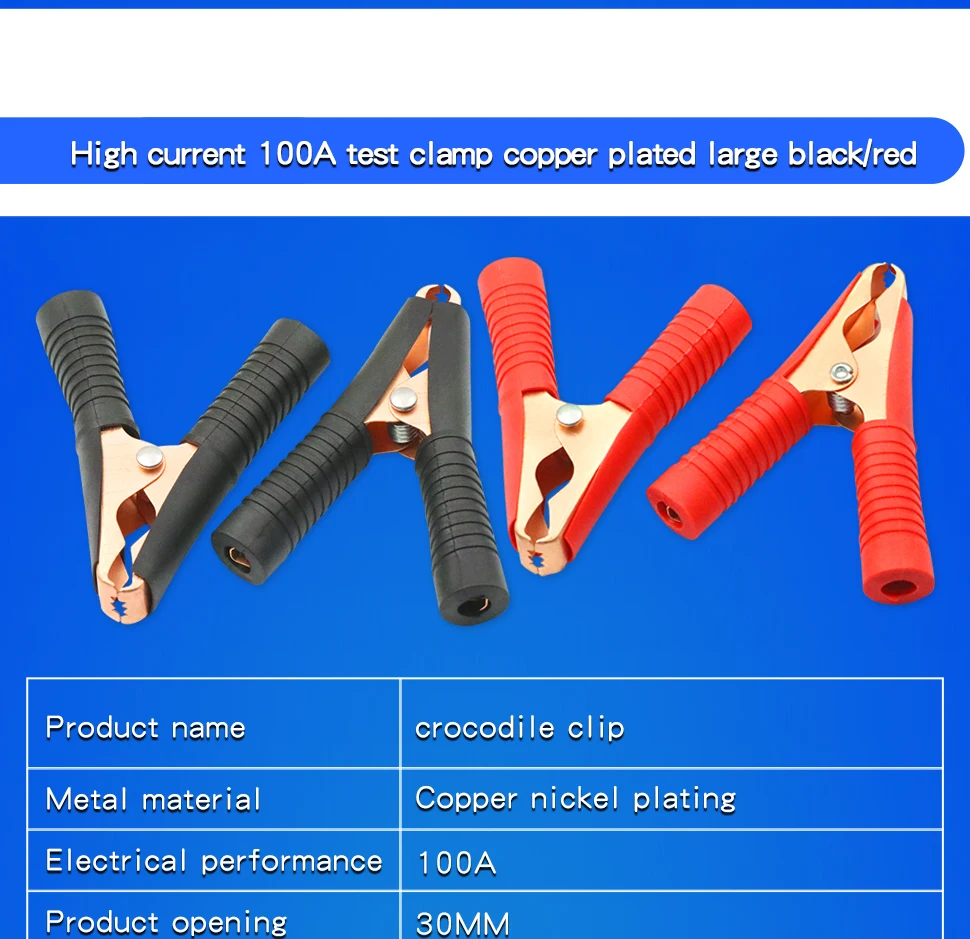 Uncategorized 30A/50A/100A Red/Black 10/20/30mm Alligator Clips Car Battery Copper Plated Test Lead Clip Electrical DIY Tools affiliatedstore - March 26, 2024 0 Price: [price_with_discount]
