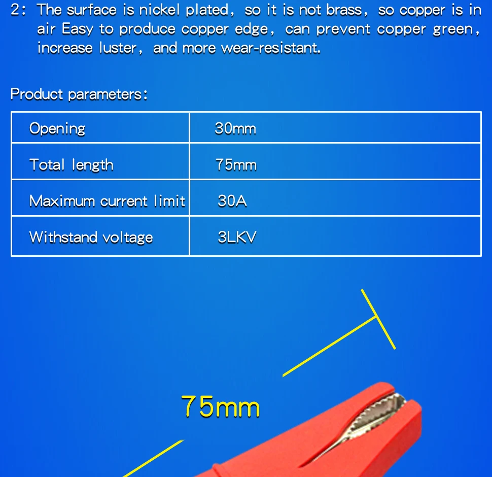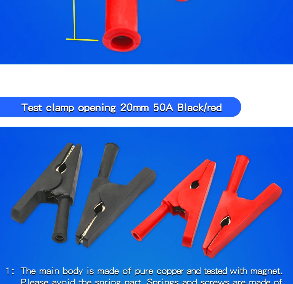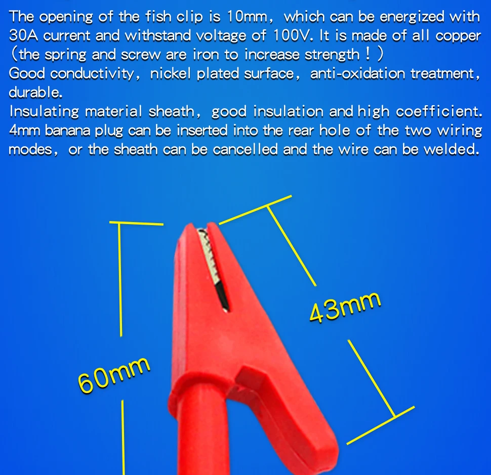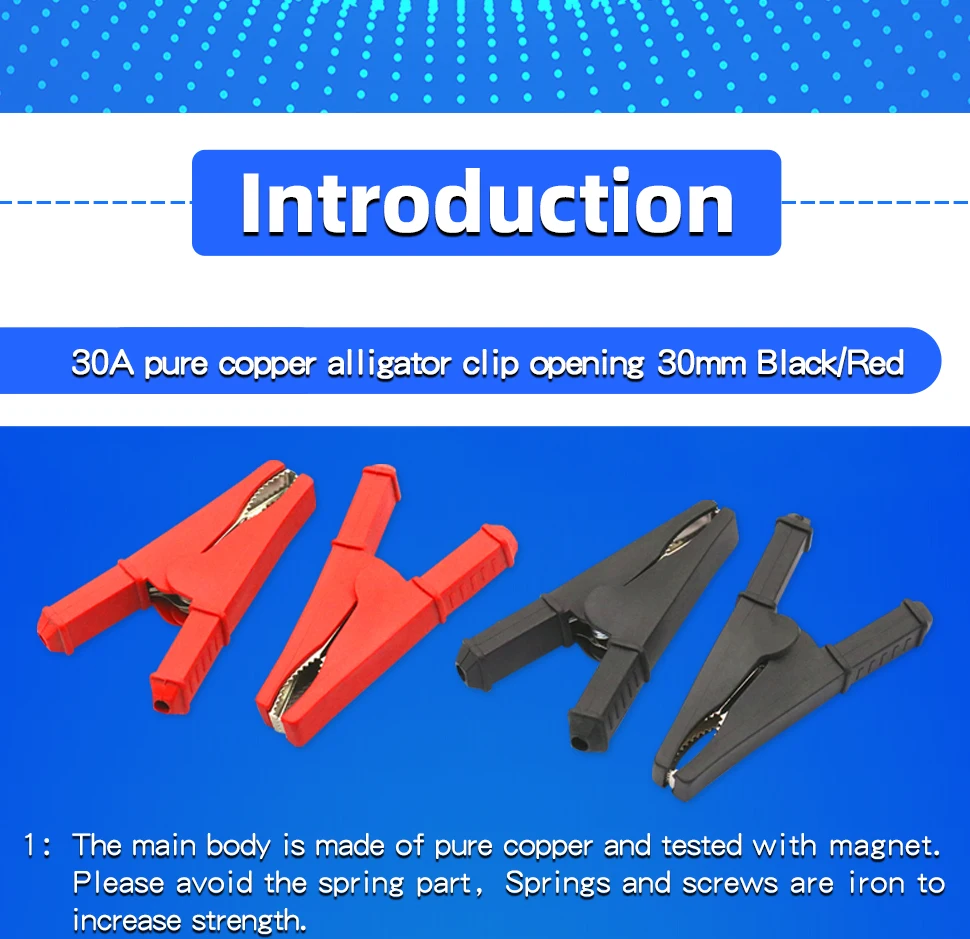 Uncategorized 30A/50A/100A Red/Black 10/20/30mm Alligator Clips Car Battery Copper Plated Test Lead Clip Electrical DIY Tools affiliatedstore - March 26, 2024 0 Price: [price_with_discount]