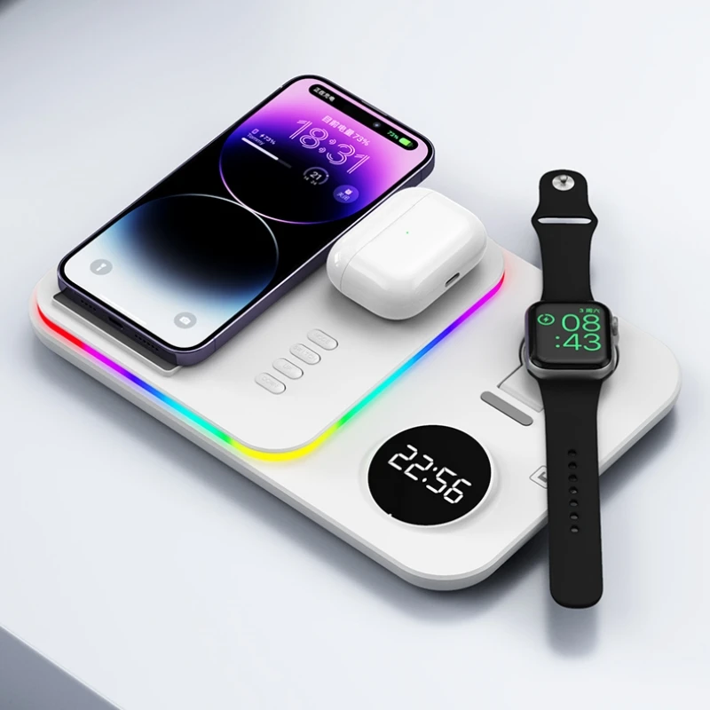 HaaYot Best Quailty 5 In 1 LED Wireless Fast Charger Dock Charging Station for Airpods Apple Watch 8 7 6 iPhone 12 13 14 15