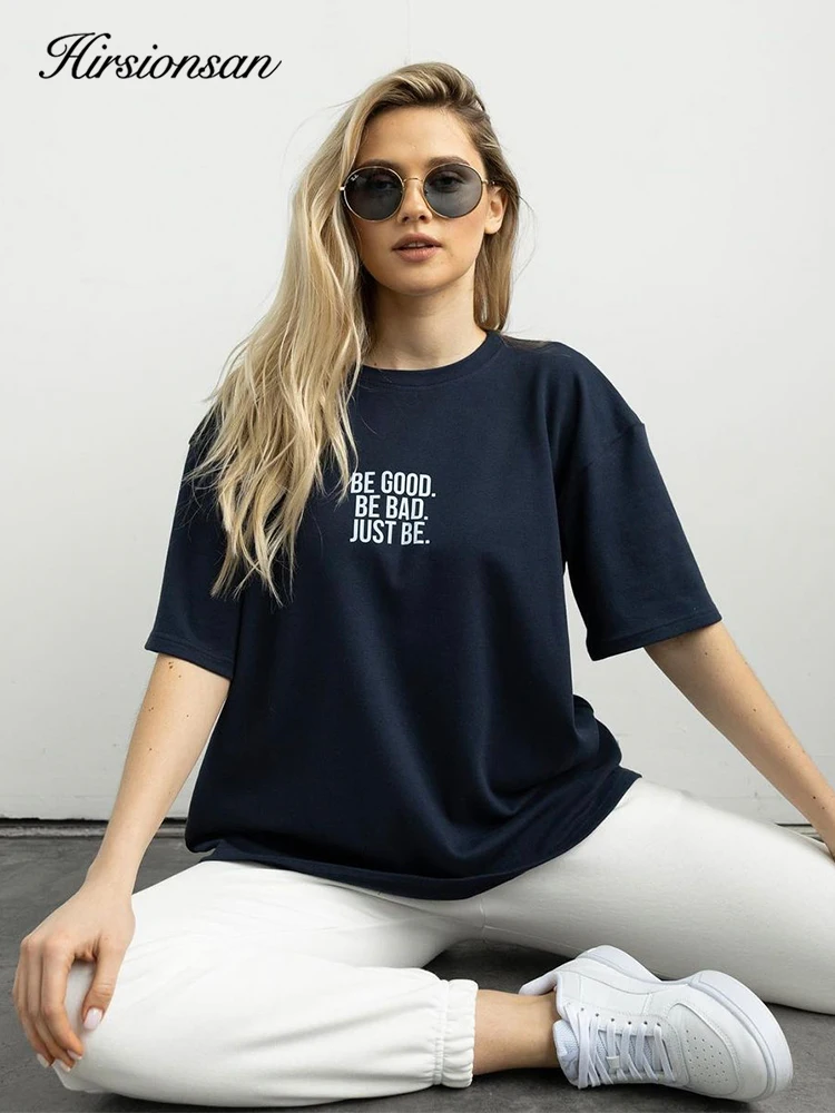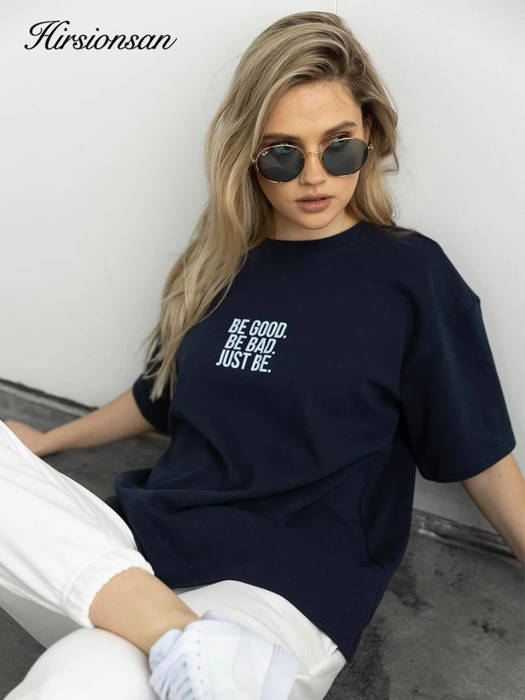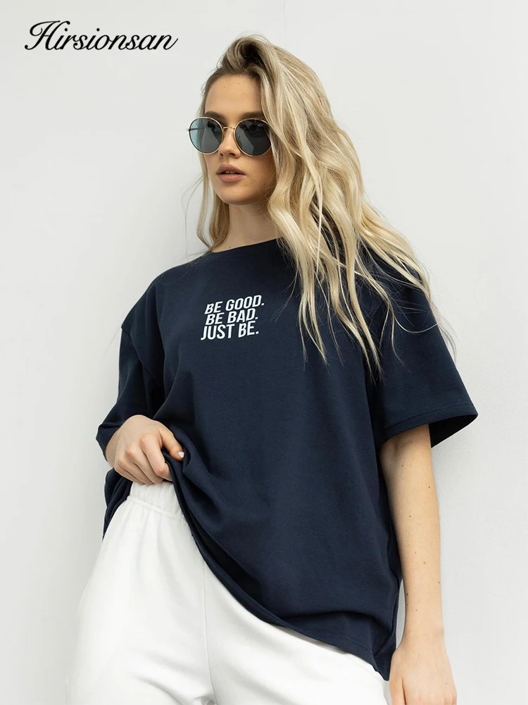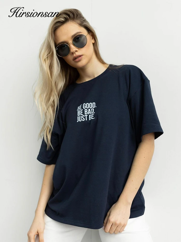 Hirsionsan Simple Loose Letter Printed T-shirt For Women 2023 Summer Soft Short Sleeve Basic Tees Trendy Streetwear Female Tops
