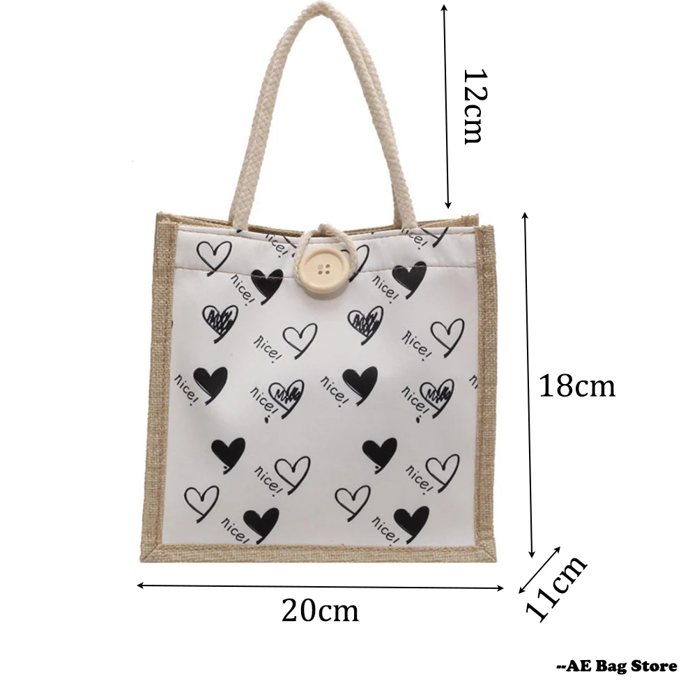ISKYBOB Linen Button Zipper Handbag Women Tote Large Capacity Grocery Bag Gift Bag Beach Organizer Portable Shopping Lunch Bag
