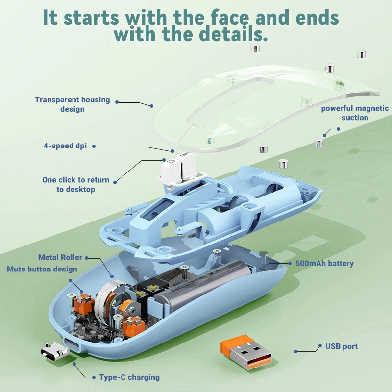 Strong suctionmagneticclasp,one-stepdisassemblyBuilt-in magnet design,strongsuctionmouse Stable andwill not fall off