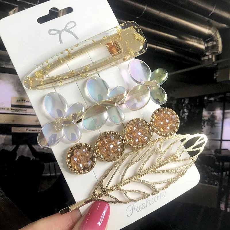 New Fashion 3/4pcs/set Pearl Hair Clip For Women Korean Trendy Geometric Crystal Hair Berrettes Girl Hair Accessories Hairgrip