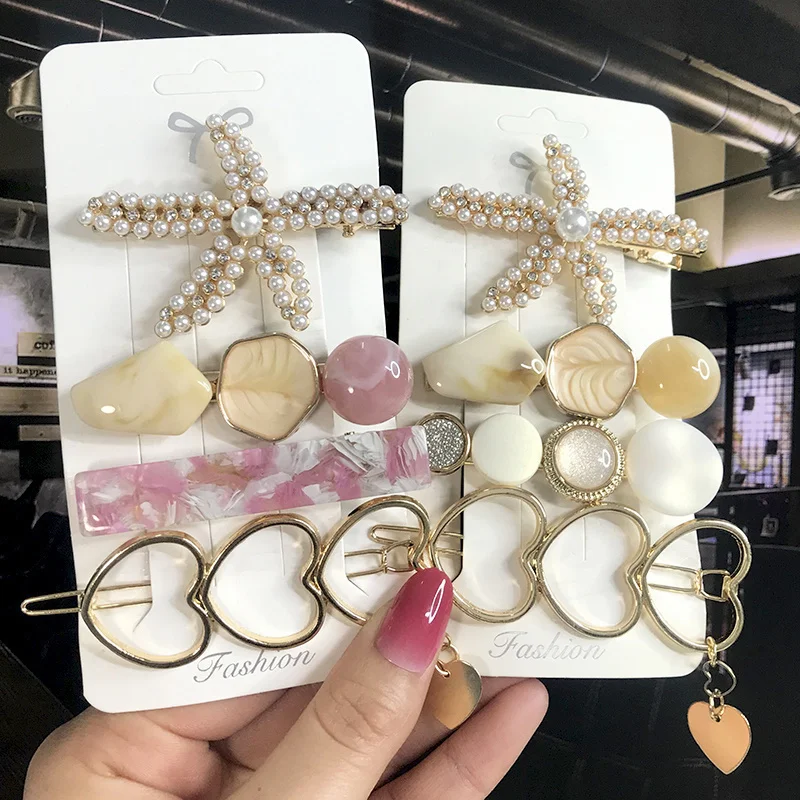 New Fashion 3/4pcs Set Pearl Hair Clip For Women Korean Hairpin Geometric Crystal Hair Barrettes Girl Hair Accessories Hairgrip