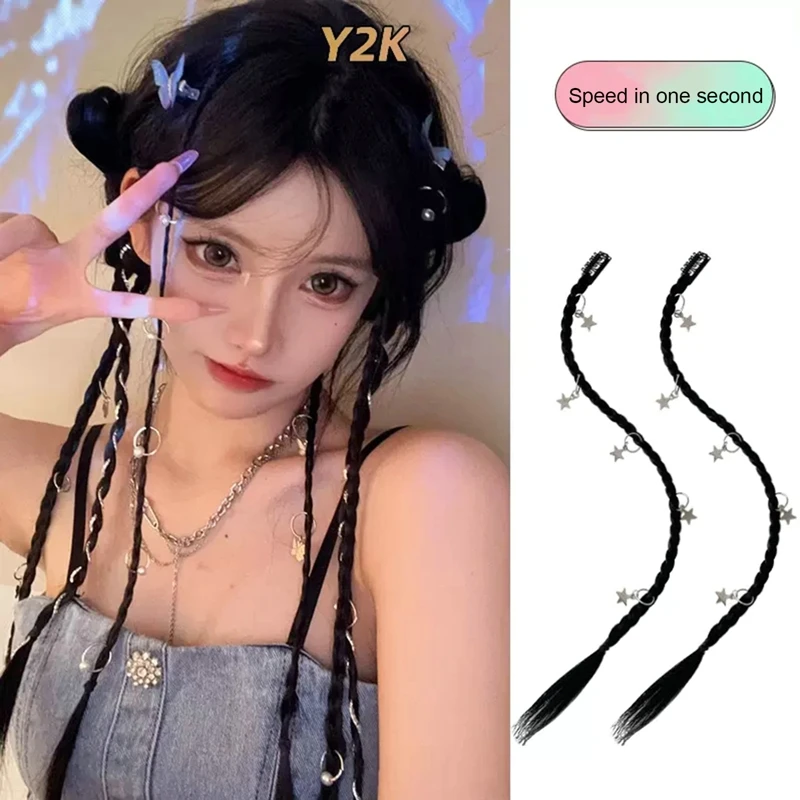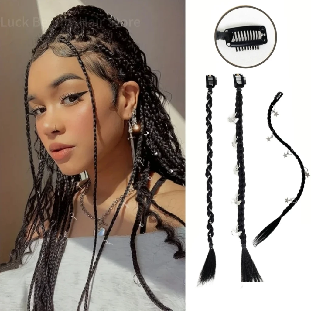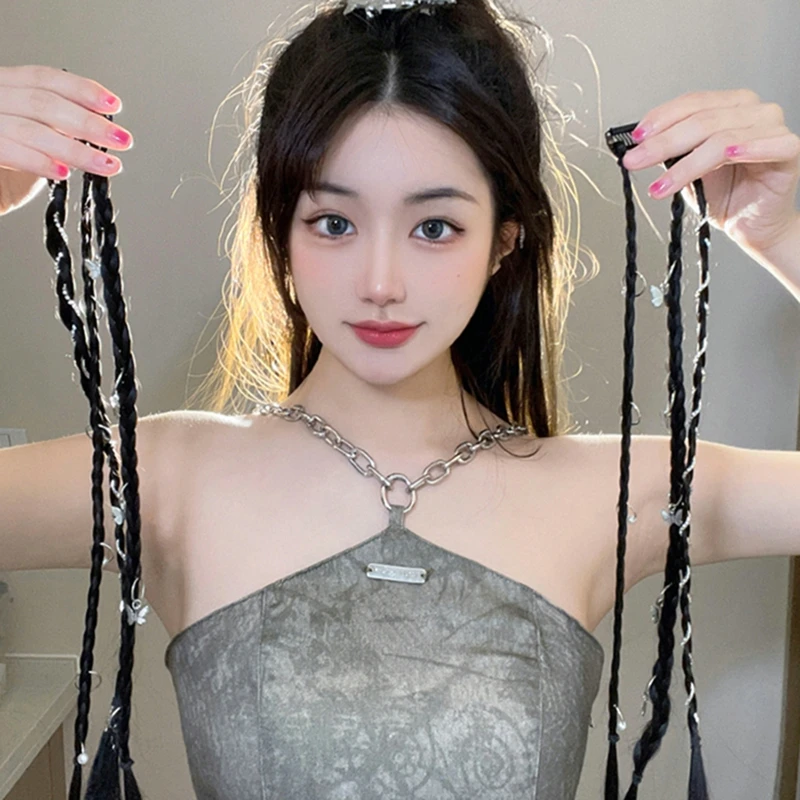 Synthetic Boxing Braids Ponytail Wigs Y2k Style Twist Braid Hair Clips Butterfly Star Design Clip In Ponytail Hair Extensions