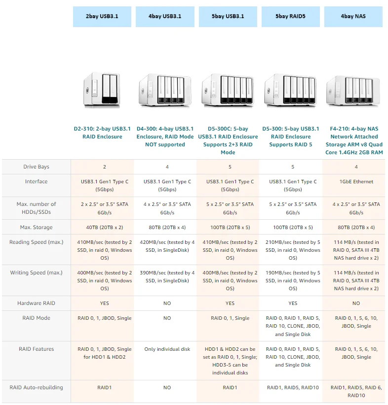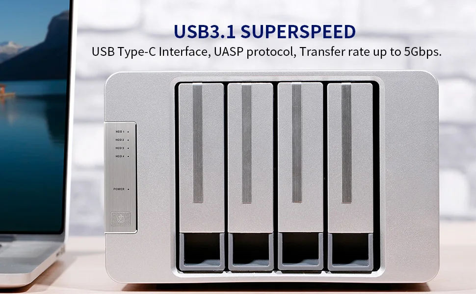 The D4-300 adopts USB3.1(Gen1, 5Gbps) Type-C interface, appropriate with 3.5” SATA onerous drive/2.5” SSD. The gadget can assist as much as 4 onerous drives and helps a complete storage capability of as much as 80TB (20TB x 4).