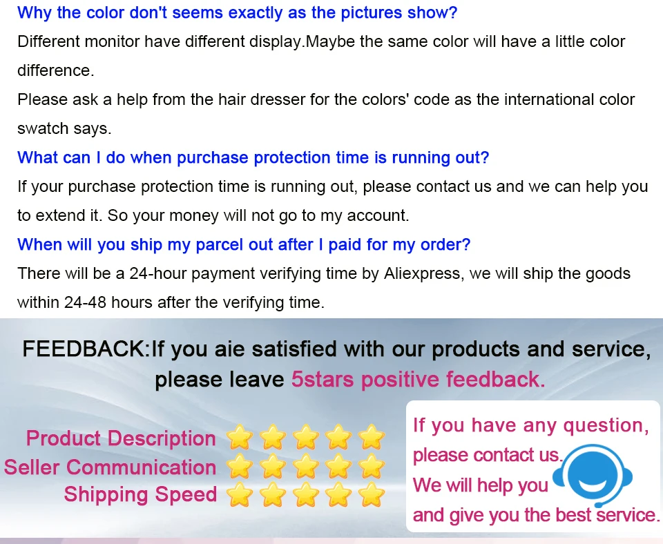 Features: Pure coloration、Fresh, pure、 Simulation 、True hair really feel, Soft, Straight, Slippery, Rough, High power, Not straightforward to knot、No odor 、No hair loss and hair breakage happens、Easy to take care of .