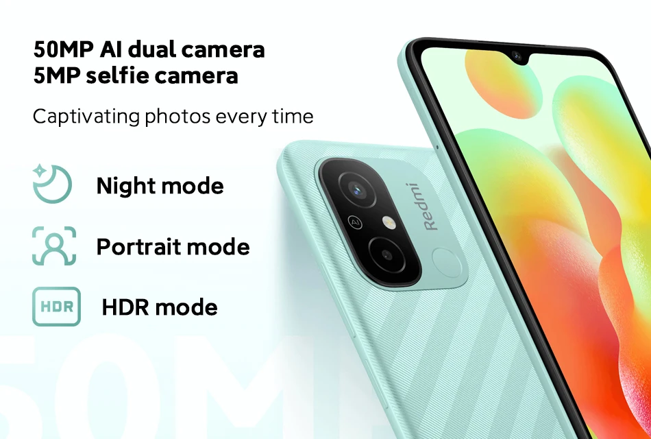 Global Version Redmi 12C, 50MP Main Camera, 5000mAh Large Battery with Original EU Charger.