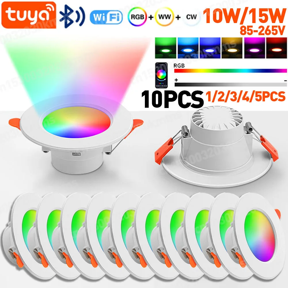 RGB LED Bulb Tuya Dimmable Downlight Spotlight Bluetooth-Compatible Lamp 10W 85-265V APP Control RGBCW Atmosphere Decorative Night Light