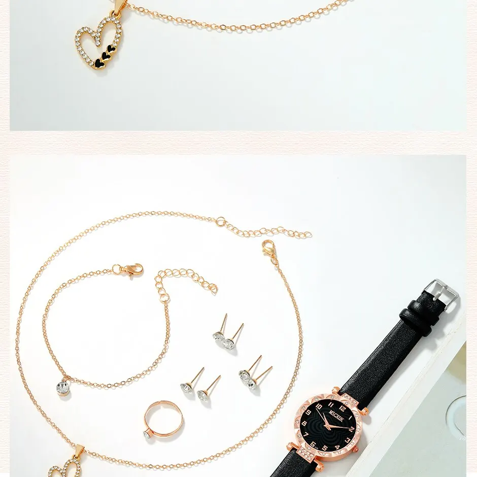 • Fashionable Accessory Set :This set features a quartz wristwatch and jewellery items like a necklace, bracelet, earrings, and ring, offering an entire and stylish accent set for any outfit.