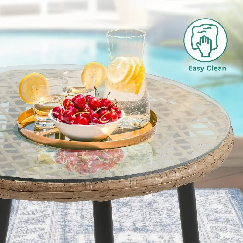 - GLASS SIDE TABLE: The elegant facet desk renders tempered glass prime with a touch of glam; Suction cup connects espresso desk floor with legs to grant nice help for meals, drinks, or different gadgets inside 75 lbs.