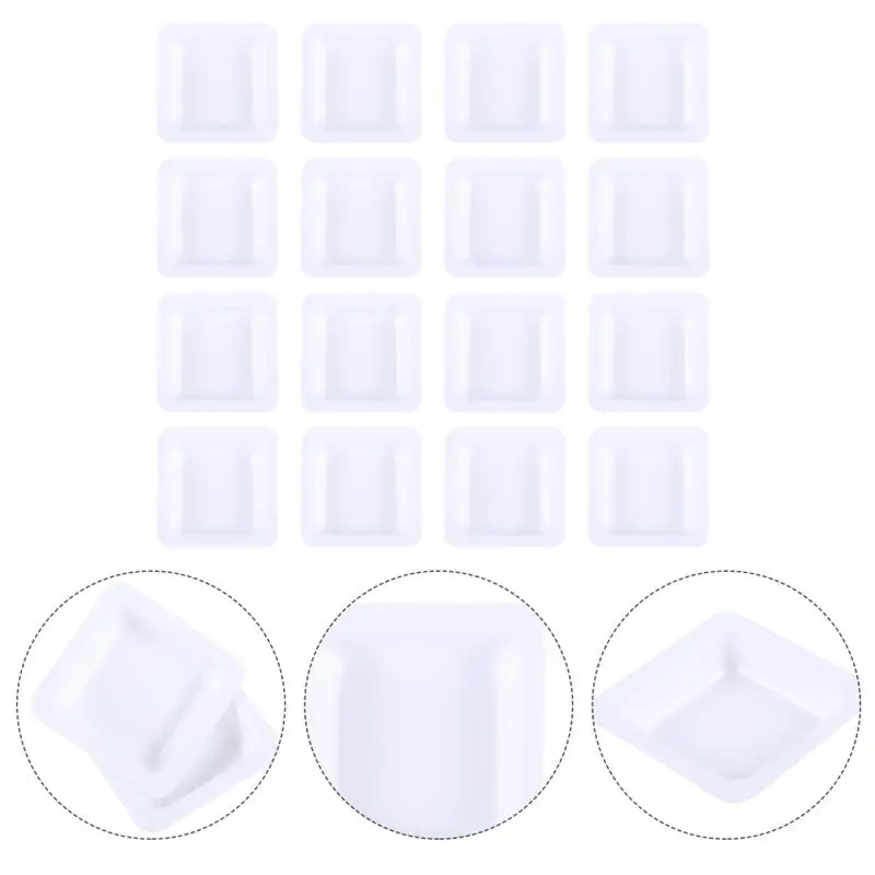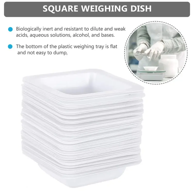 Food secure, light-weight and weight trays for mixing and measuring liquids, solids and powders. Disposable for fast, simple clear up. The plastic weighing tray has a flat backside that resists tipping and uniform form and weight for straightforward stacking.