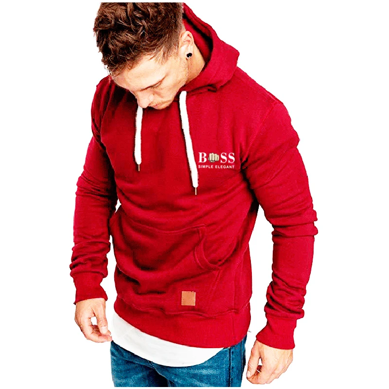 Autumn and winter men’s fashionable fleece hooded casual sports pullover outdoor street jogging solid color long sleeved top