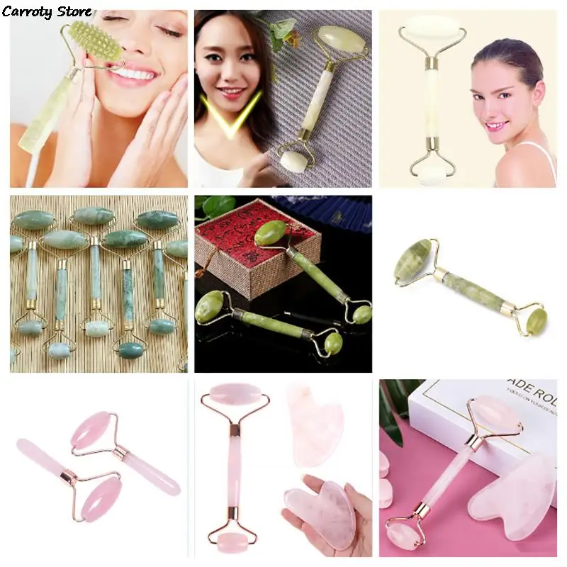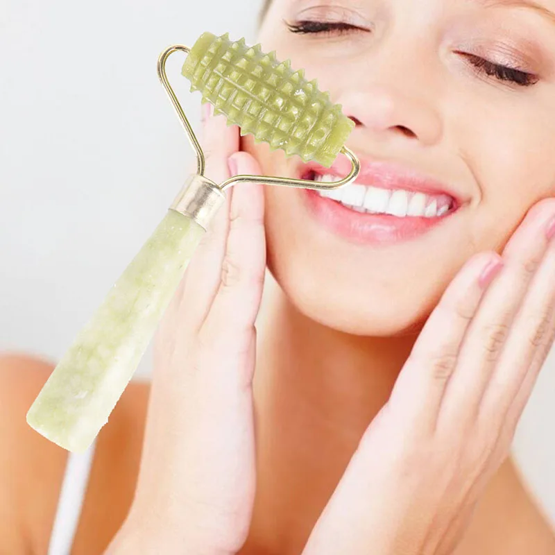 Green Pink Jade Roller Massager For Face Natural Stone Slimming Lift Massage Facial Tools For Chin Neck Beauty Skin Care Tools