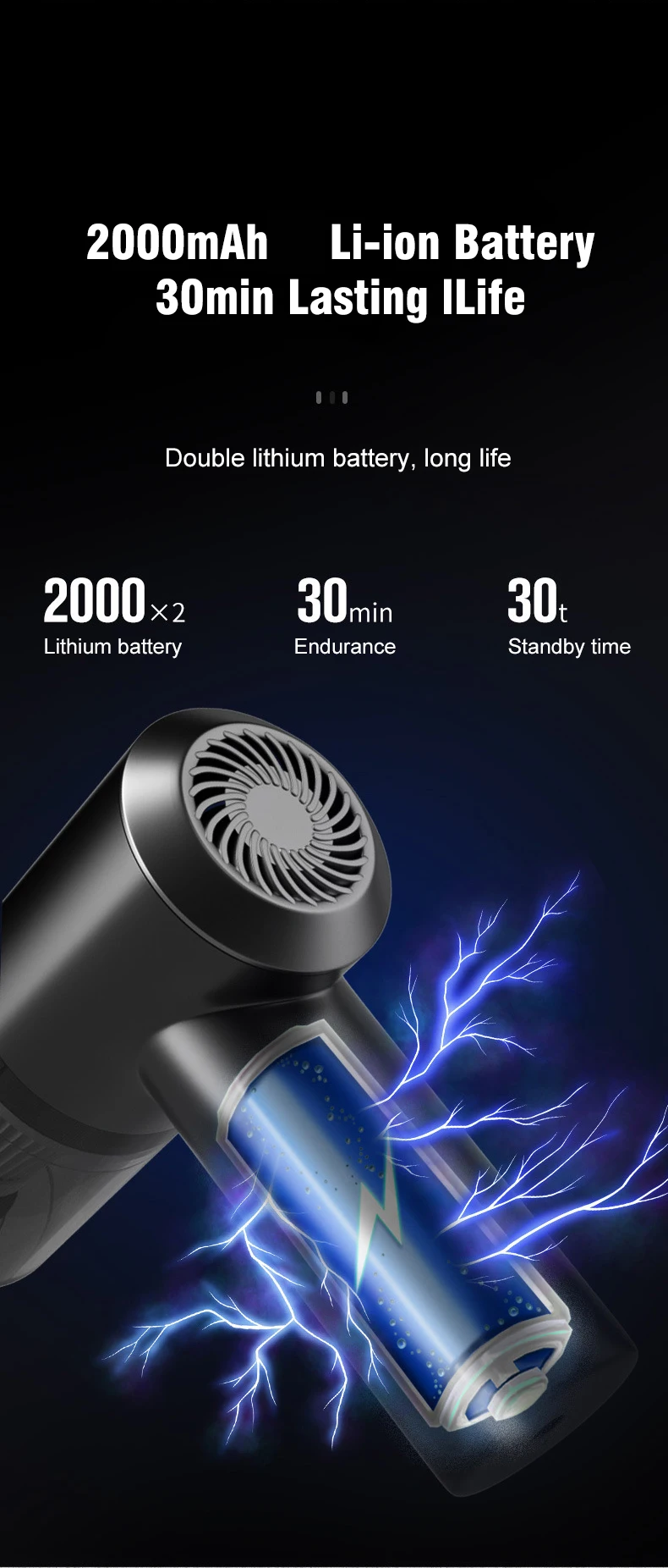 【Cordless Rechargeable】USB Rechargeable,Built-in 2000Amhbatteries ,Motor Speed Up To 62000RPM,quick Charging Technology,3h Quick Fully Charge(overcharge Protection),it Can Gives You About 30 Minutes Of Continuous Working Time,which Is Enough To Cope With Most Areas Of Your House/workplace/automobile.