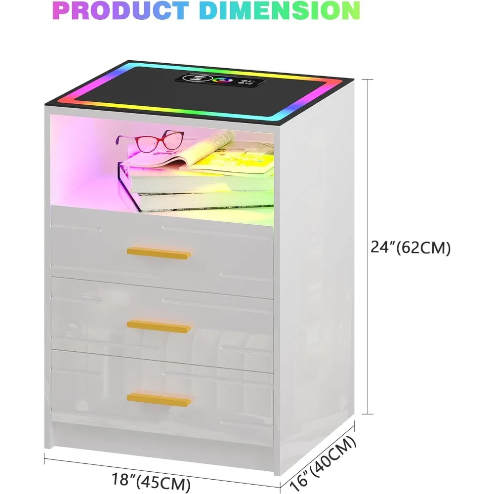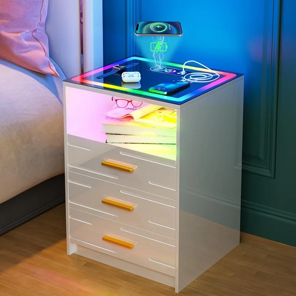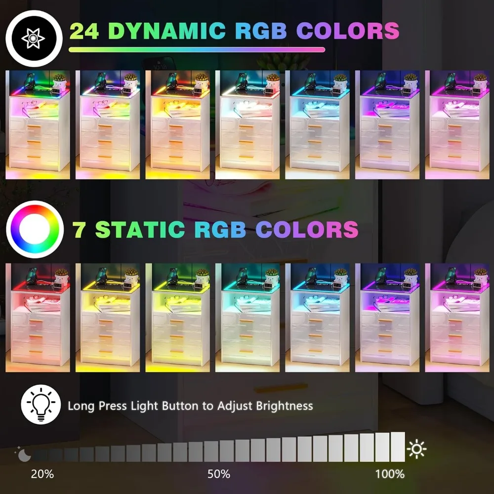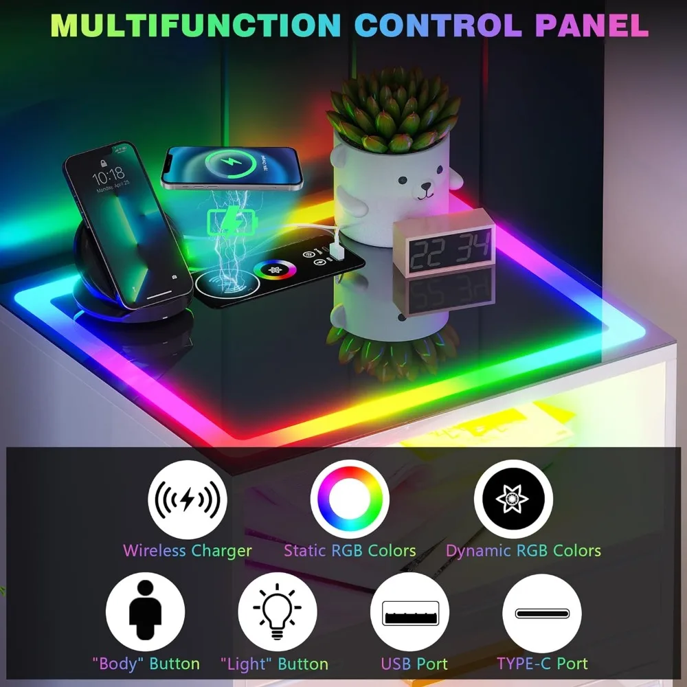 - ✅【Touch Screen and Auto Sensor 24 Color Dimmable】The good nightstand is supplied with tempered glass desktop and comes with Auto Sensor LED 24 Color(with 7 Static Color) Dimmable Design. Adjustable lighting results by a easy press contact button.