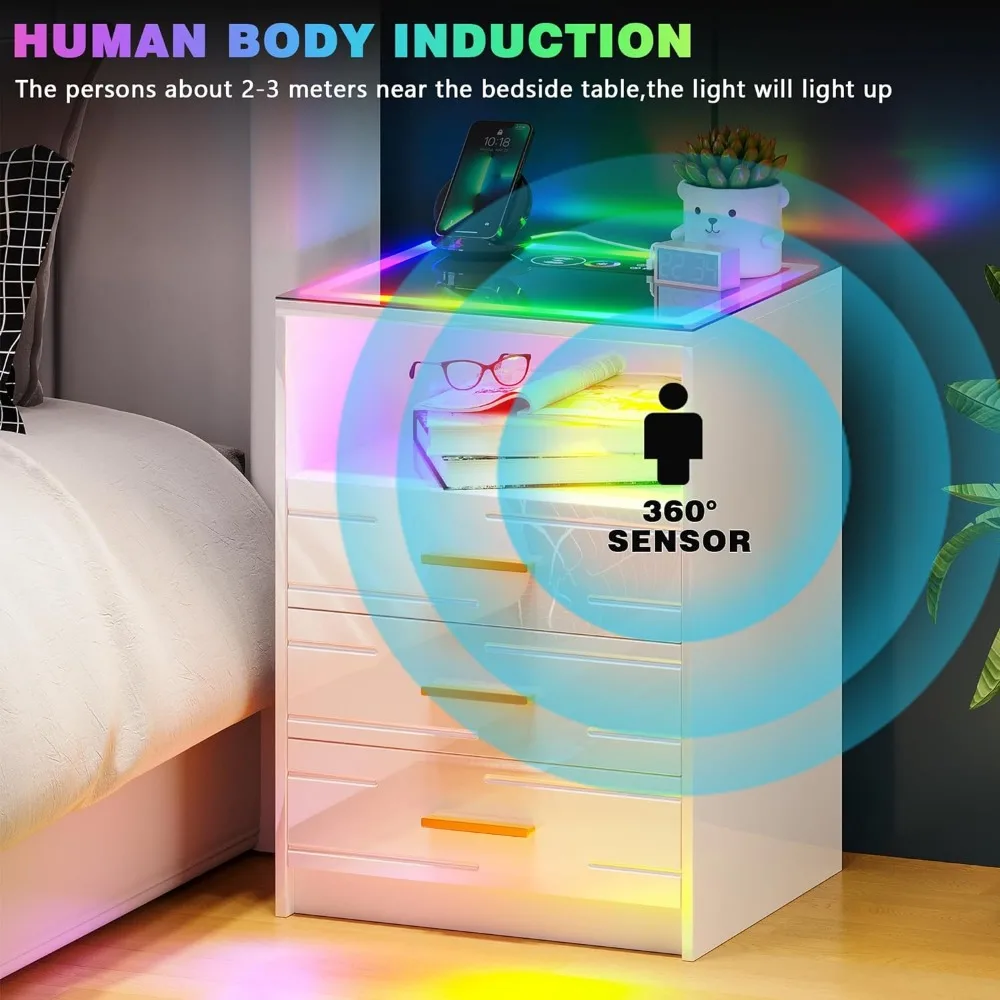 - ✅【Wireless Charging Station And USB&TYPE-C Ports】:The nightstand is organized 1 Wireless Charging and Human physique Sensing Function. When you appoaches nightstand,the LED gentle automactically activate.