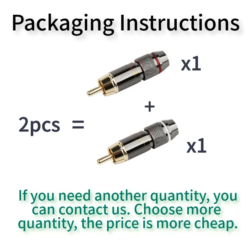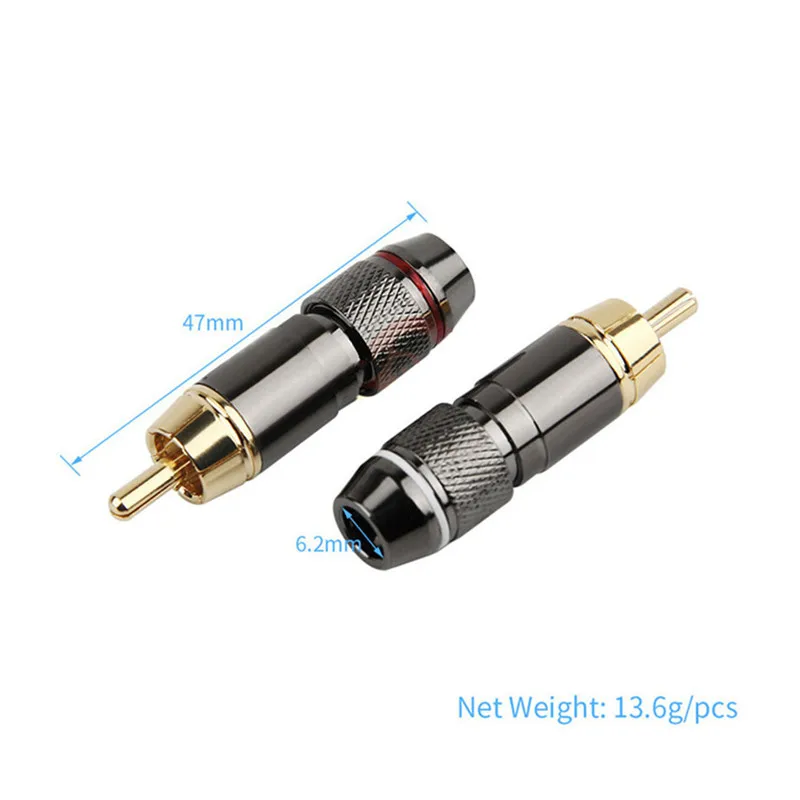 Uncategorized RCA Plug Connector Soldering Audio Video Jack DIY Speaker Wire Plugs Speakon Terminal Locking rca Stecker Consumer Electronics affiliatedstore - March 27, 2024 0 Price: [price_with_discount] 1. Product Name: RCA Plug Audio Jack Male YS-472. Wire Hole Diameter: 6.2mm3. Main Material: Copper4. Color: White, Red5. Connector Method: Solder6. Connector Size: 47mm x 6.2mm,7. Weight: About 13.6g/computer8. Plug Processing: Gold Plated1. -2/8/20/50 pcs x RCA Plug