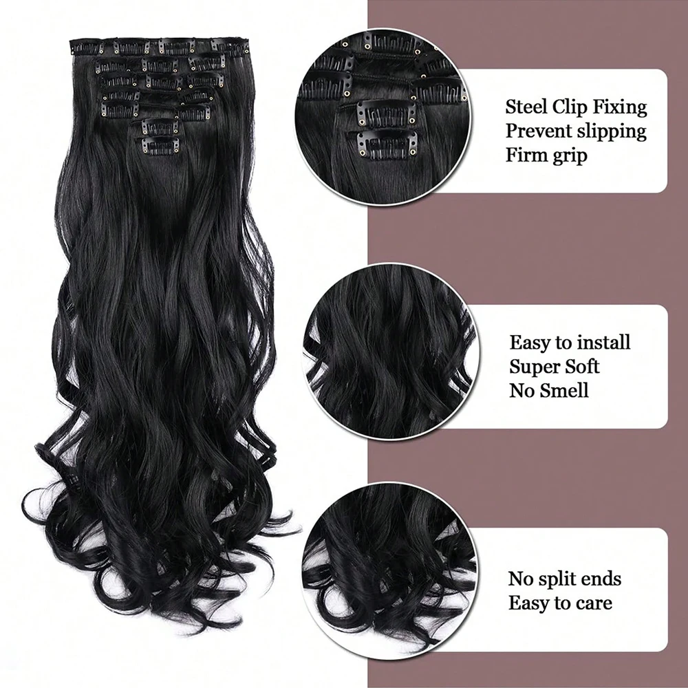 Uncategorized Black Friday 7Pcs 16 Clips 24 Inch Wavy Curly Full Head on Double Weft Hair Extensions Dark Black24 Inch For Women In Daily Use affiliatedstore - March 28, 2024 0 Price: [price_with_discount] HAIR INFORMATION Brand Name: Zhen Mei PonytailPonytail Style: Ponytail ExtensionsPonytail Color: One Colour AvailablePonytail Length: 24inchPonytail Weight: 140g/PiecePonytail Material: Synthetic Hair