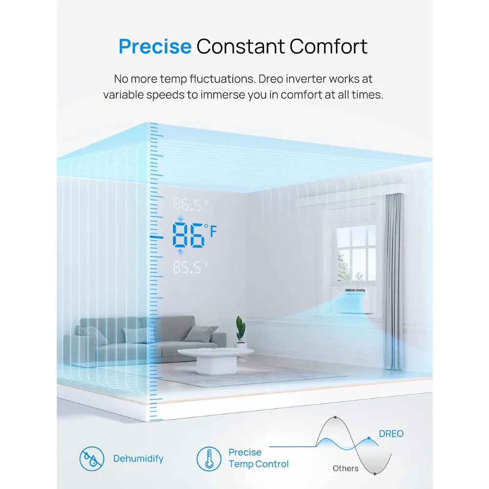 - Cools Large Rooms: Efficiently cools down your room or workplace with Dreo 8,000 BTU variable-speed window air conditioner, with directional air louvers that enable this window ac unit to blow chilly air to the left, the best, the up and down, overlaying bigger areas of up to 350 sq ft.