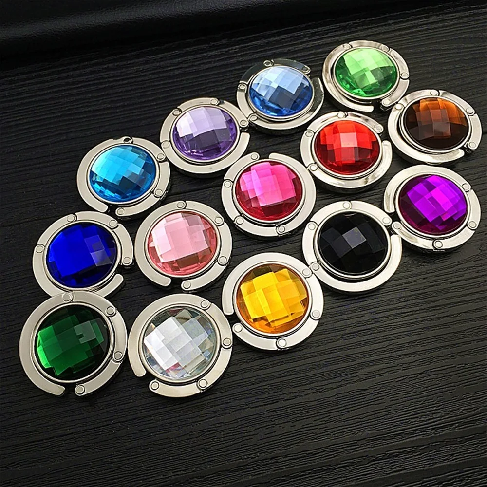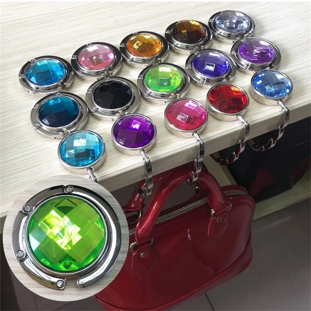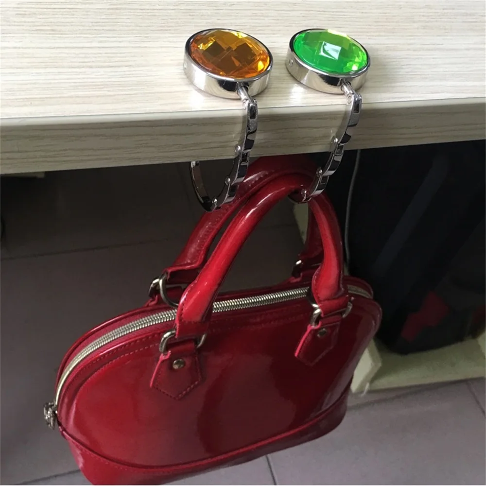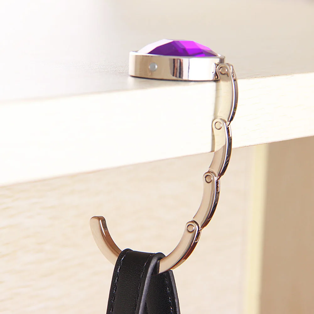 Folding Handbag Hook Bag Holder for Key Ring Storage Bling Rhinestone Purse Hook Portable Home Office Table Desk Hanger
