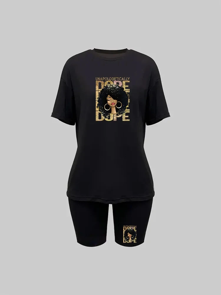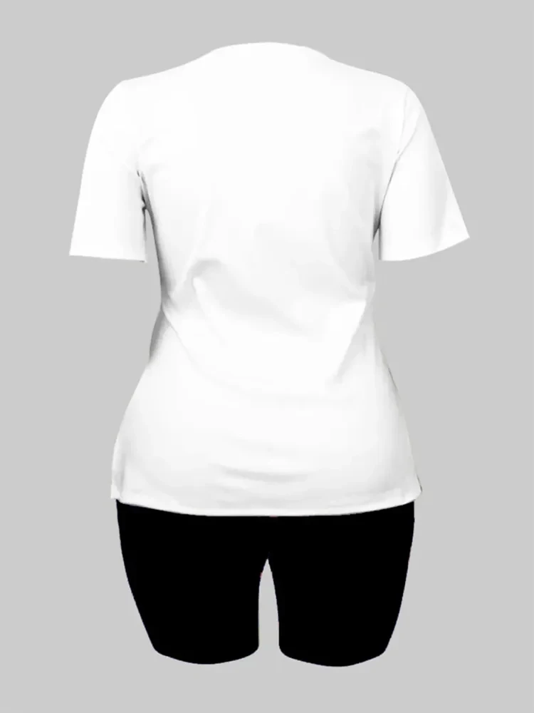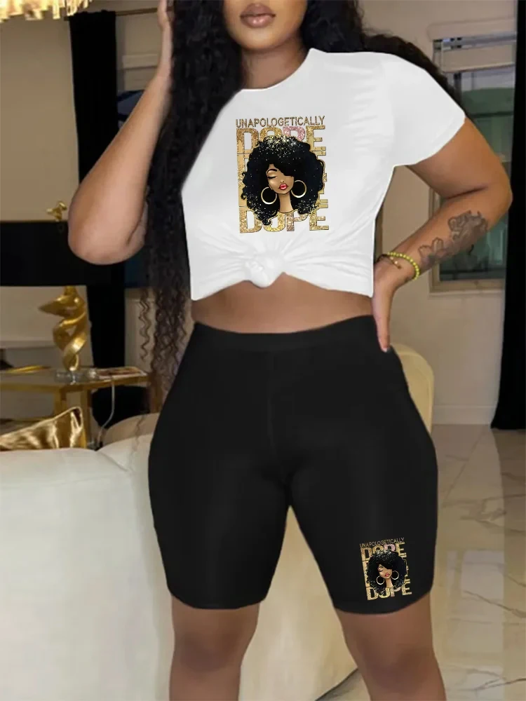 Home Uncategorized Graphic Print Two Piece Set, Short Sleeve T-shirt & Short Leggings, Women’s Clothing