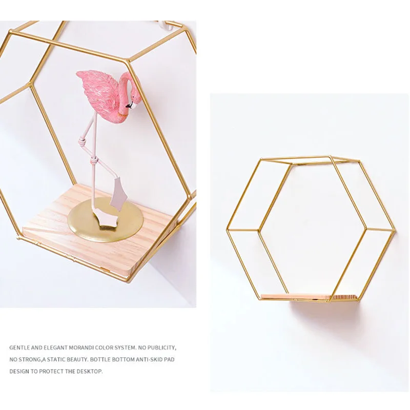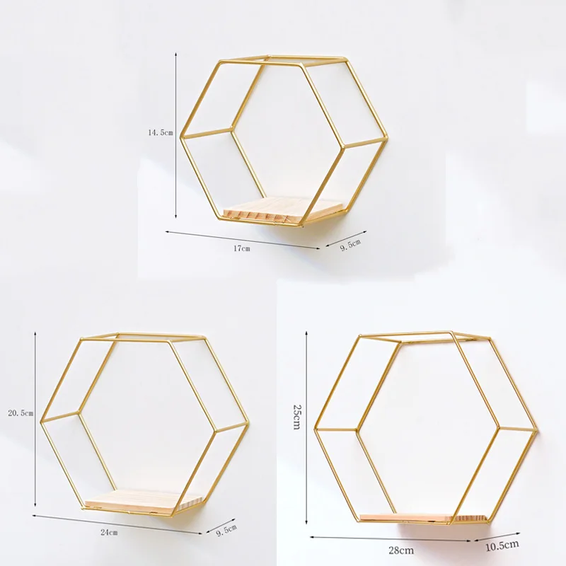 Nordic Style Iron Wall Shelf Hexagonal Metal Wall Storage Rack Shelves With Wooden Board Display Racks Kitchen Room Home Decor