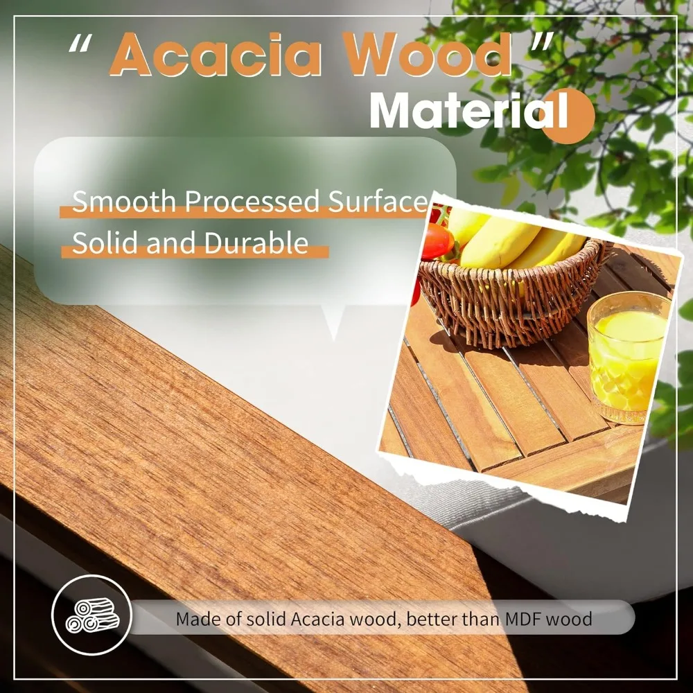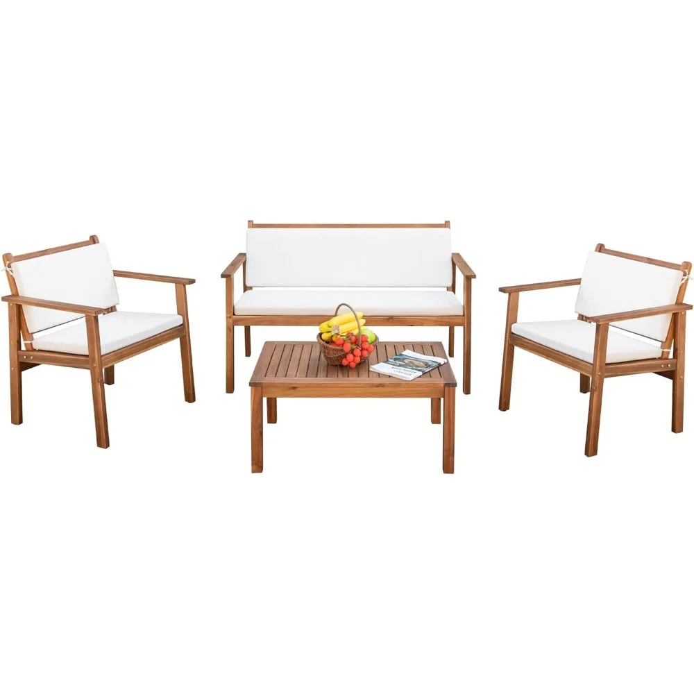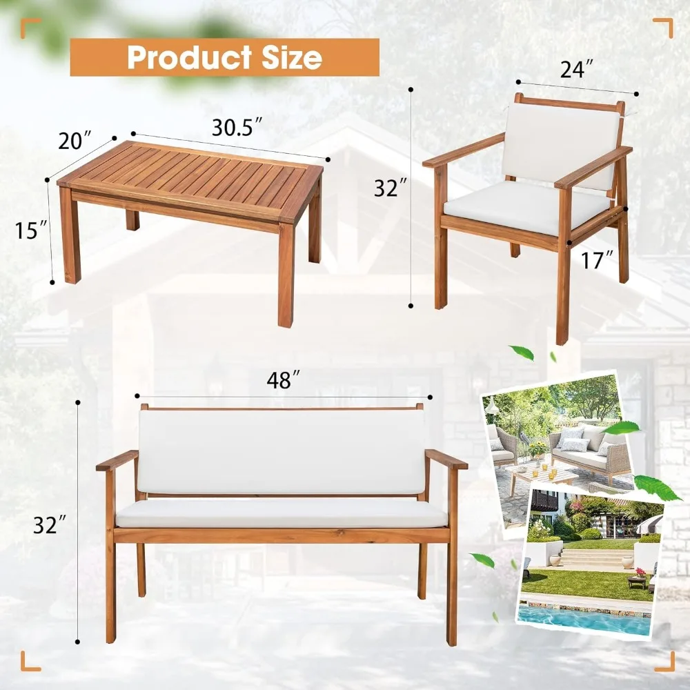 Patio Furniture 4 Piece Acacia Wood Outdoor Conversation Sofa Set with Table & Cushions Porch Chairs for Garden, Deck, Backyard